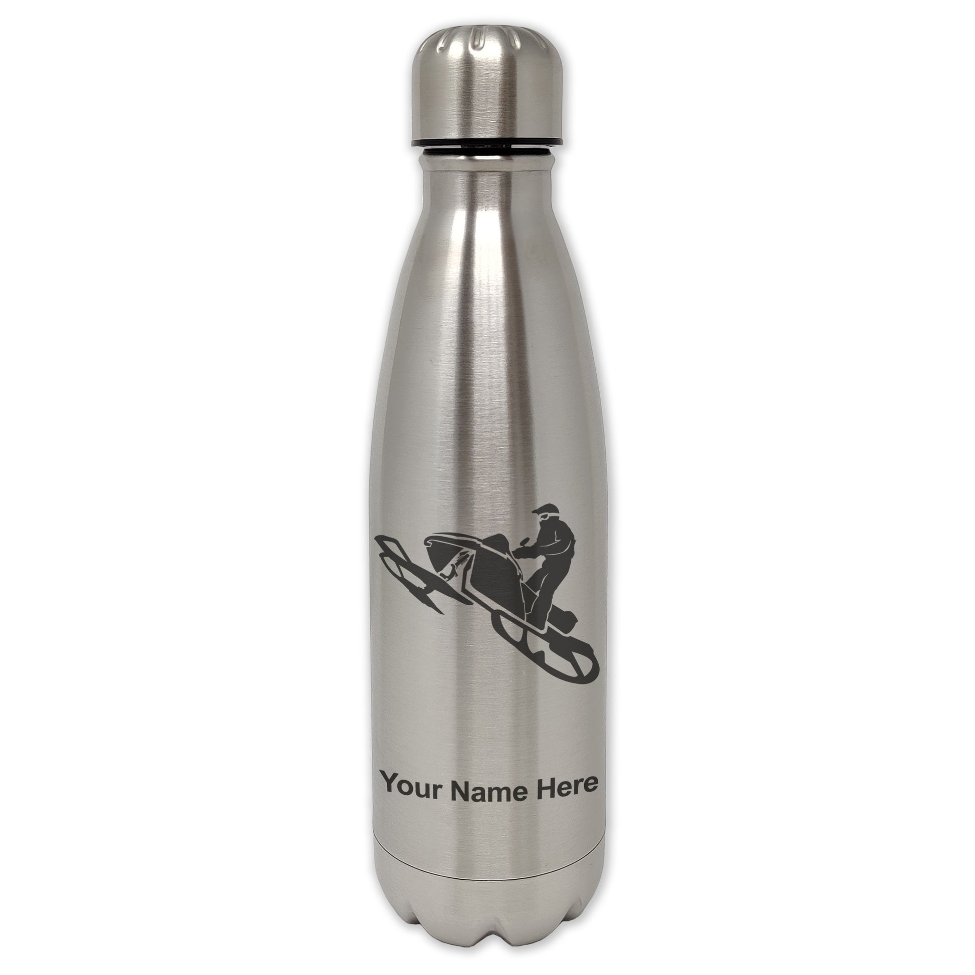 LaserGram Single Wall Water Bottle, Snowmobile, Personalized Engraving Included