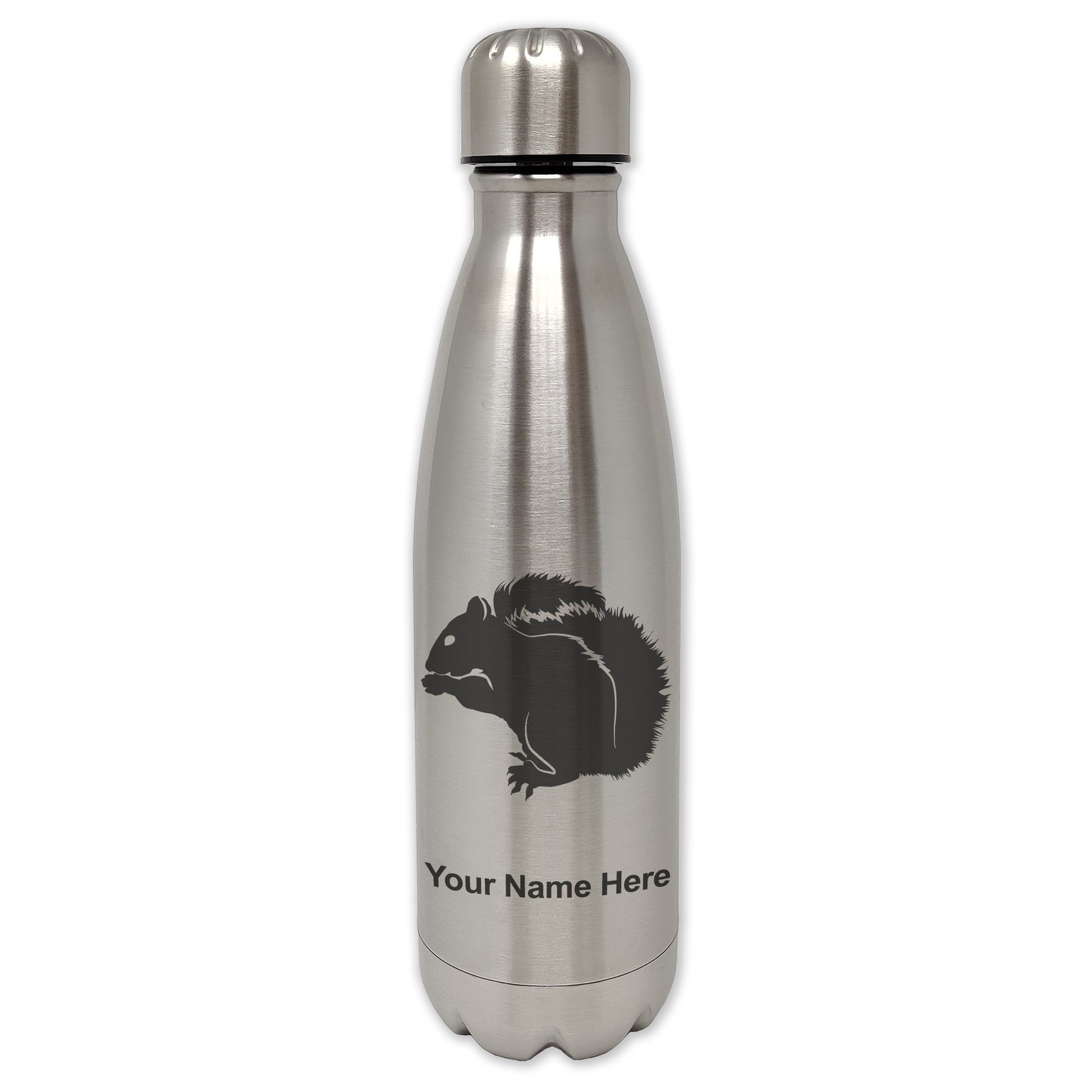 LaserGram Single Wall Water Bottle, Squirrel, Personalized Engraving Included