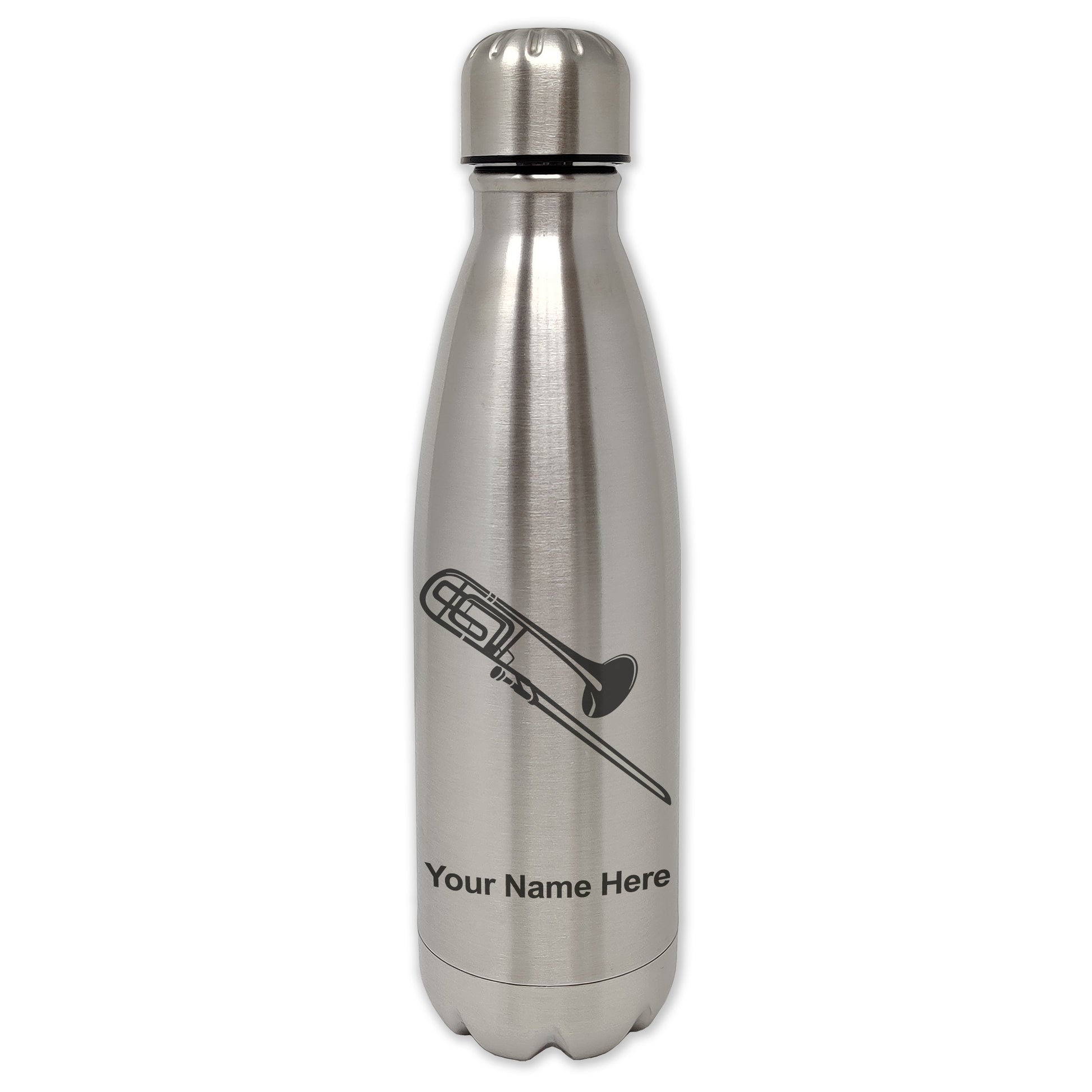 LaserGram Single Wall Water Bottle, Trombone, Personalized Engraving Included
