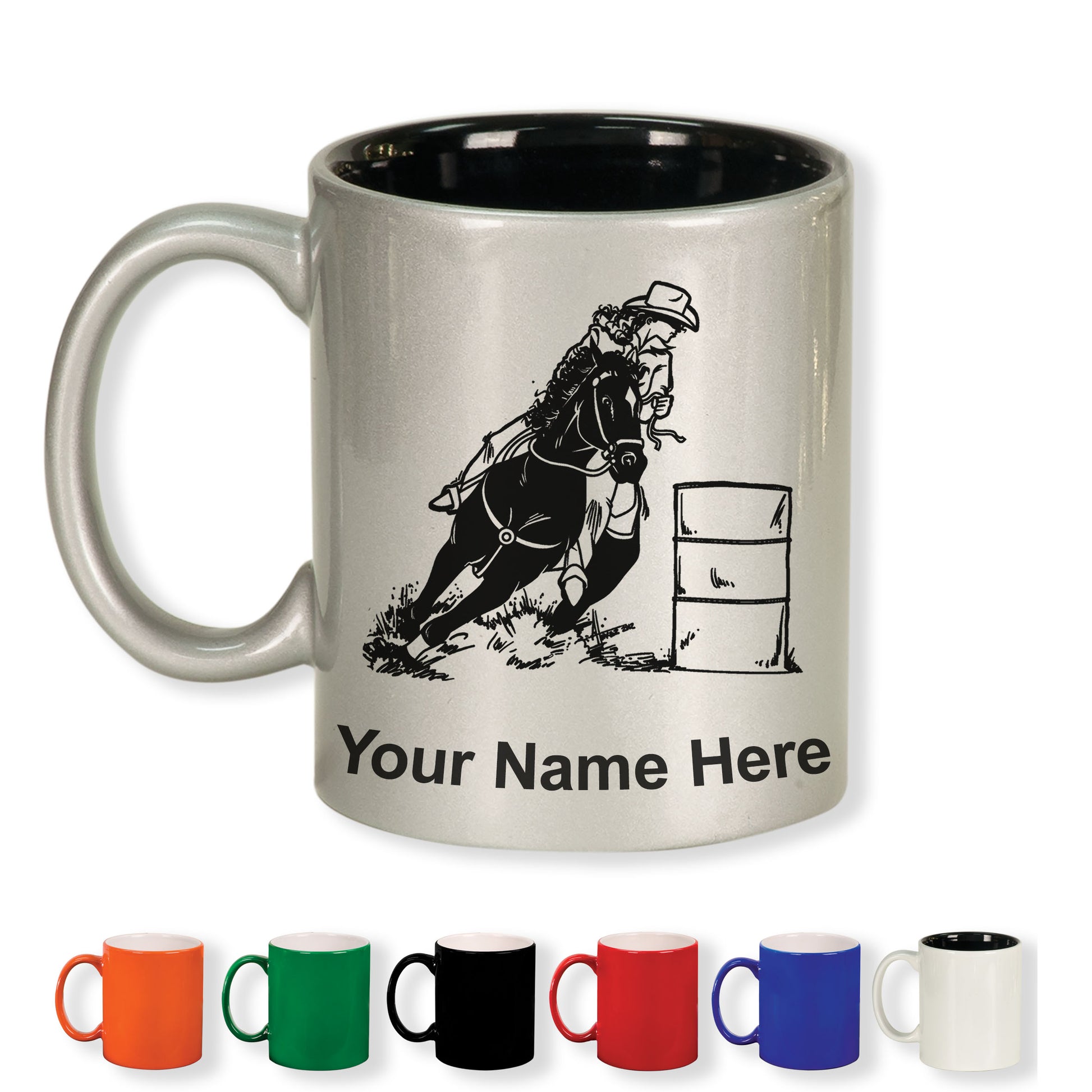 11oz Round Ceramic Coffee Mug, Barrel Racer, Personalized Engraving Included