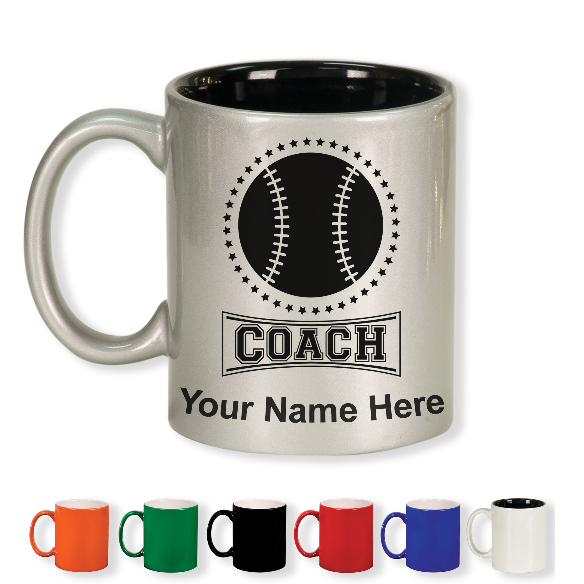11oz Round Ceramic Coffee Mug, Baseball Coach, Personalized Engraving Included