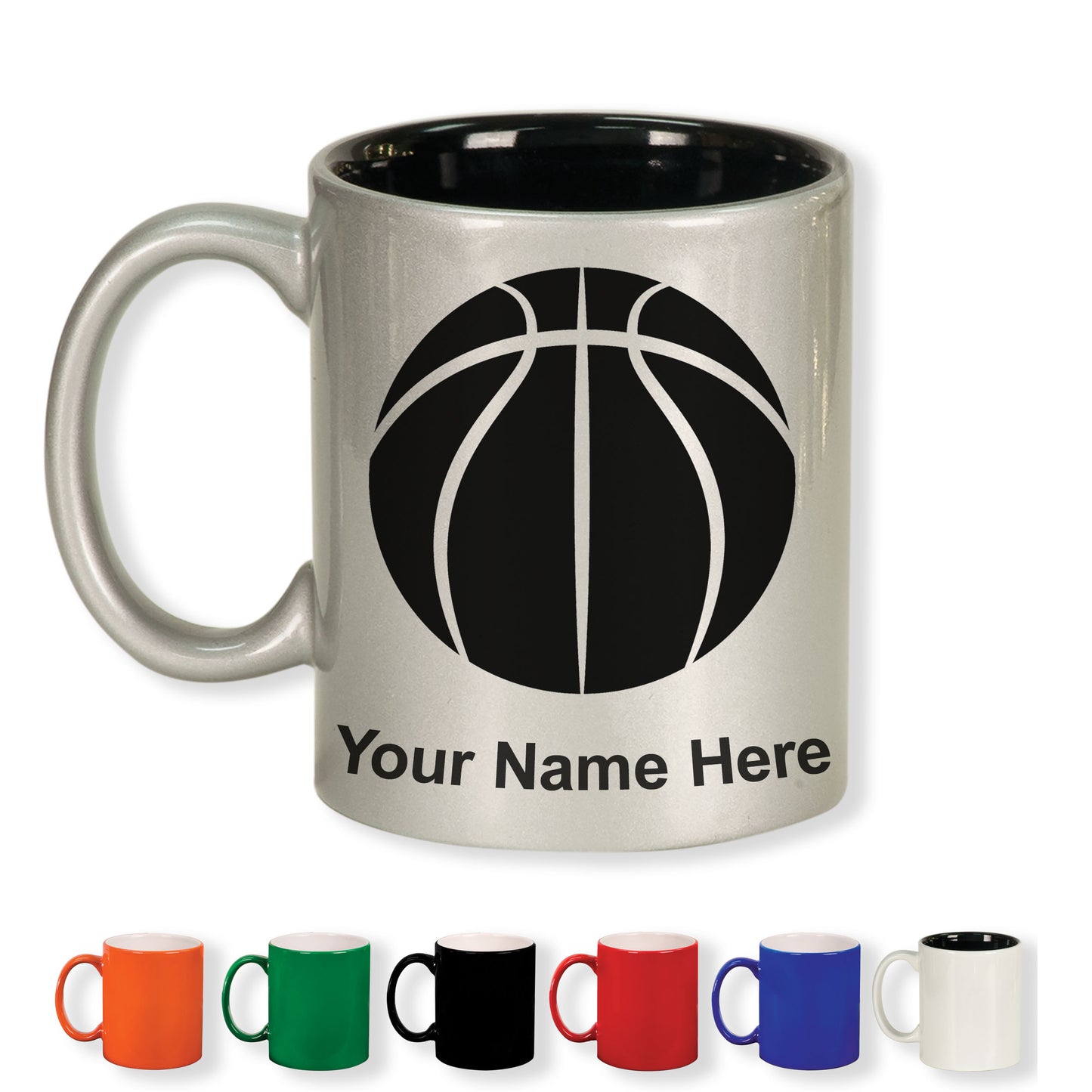 11oz Round Ceramic Coffee Mug, Basketball Ball, Personalized Engraving Included