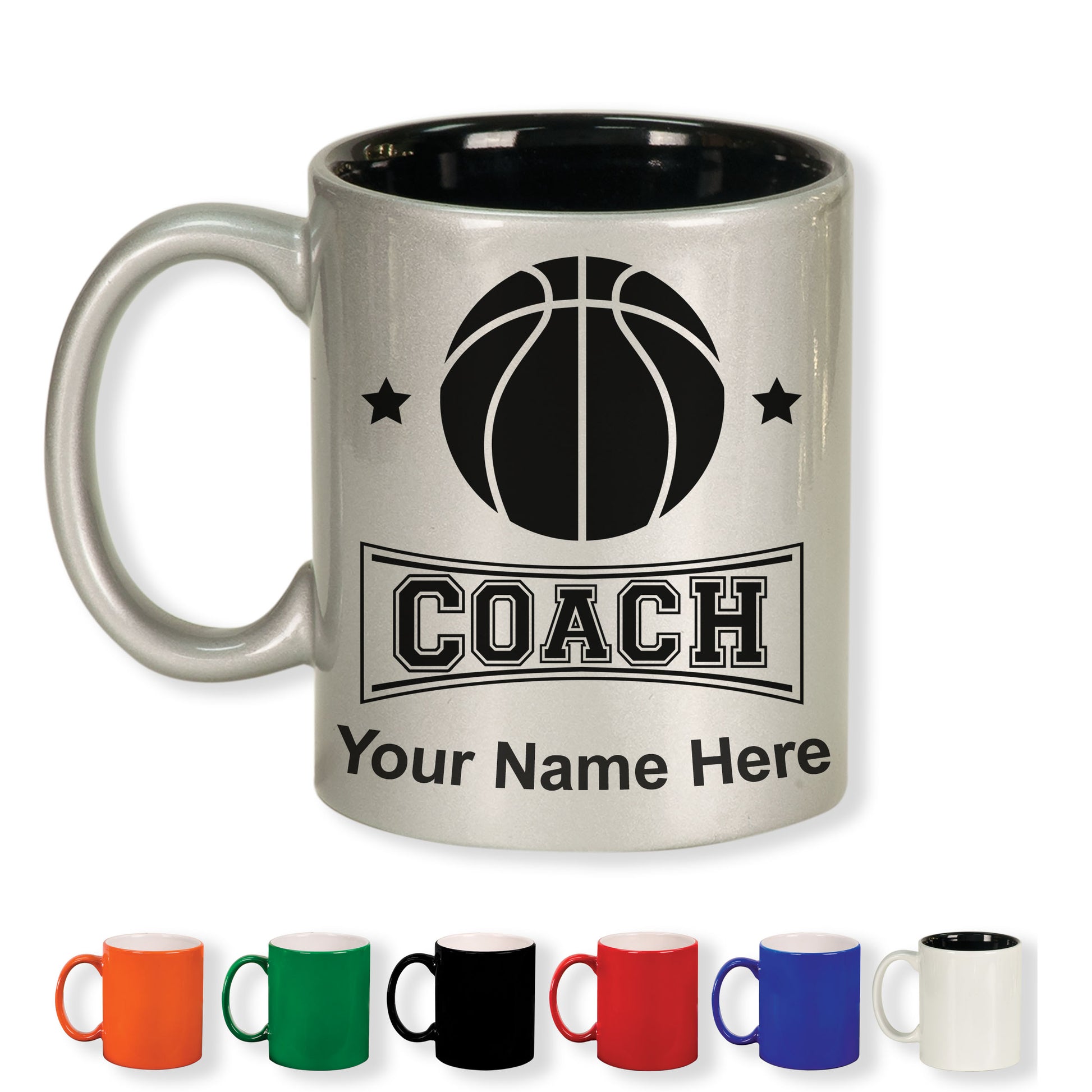 11oz Round Ceramic Coffee Mug, Basketball Coach, Personalized Engraving Included