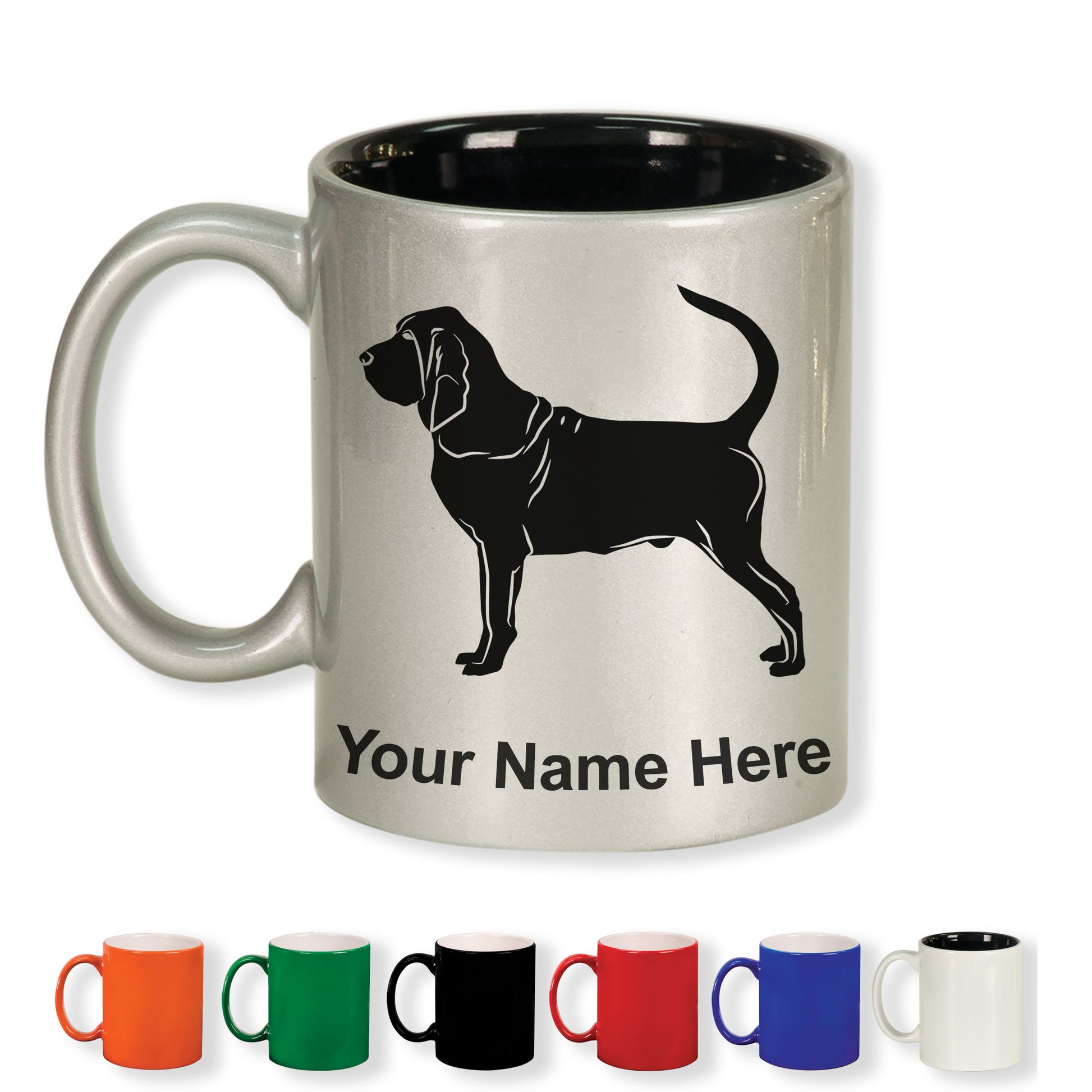 11oz Round Ceramic Coffee Mug, Bloodhound Dog, Personalized Engraving Included