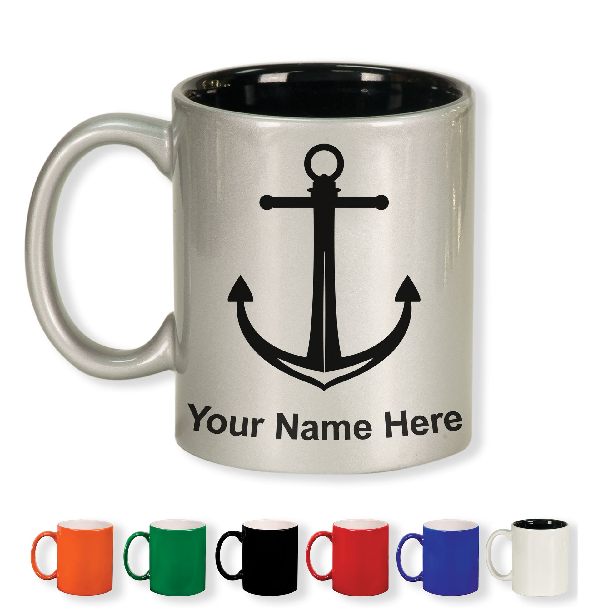 11oz Round Ceramic Coffee Mug, Boat Anchor, Personalized Engraving Included