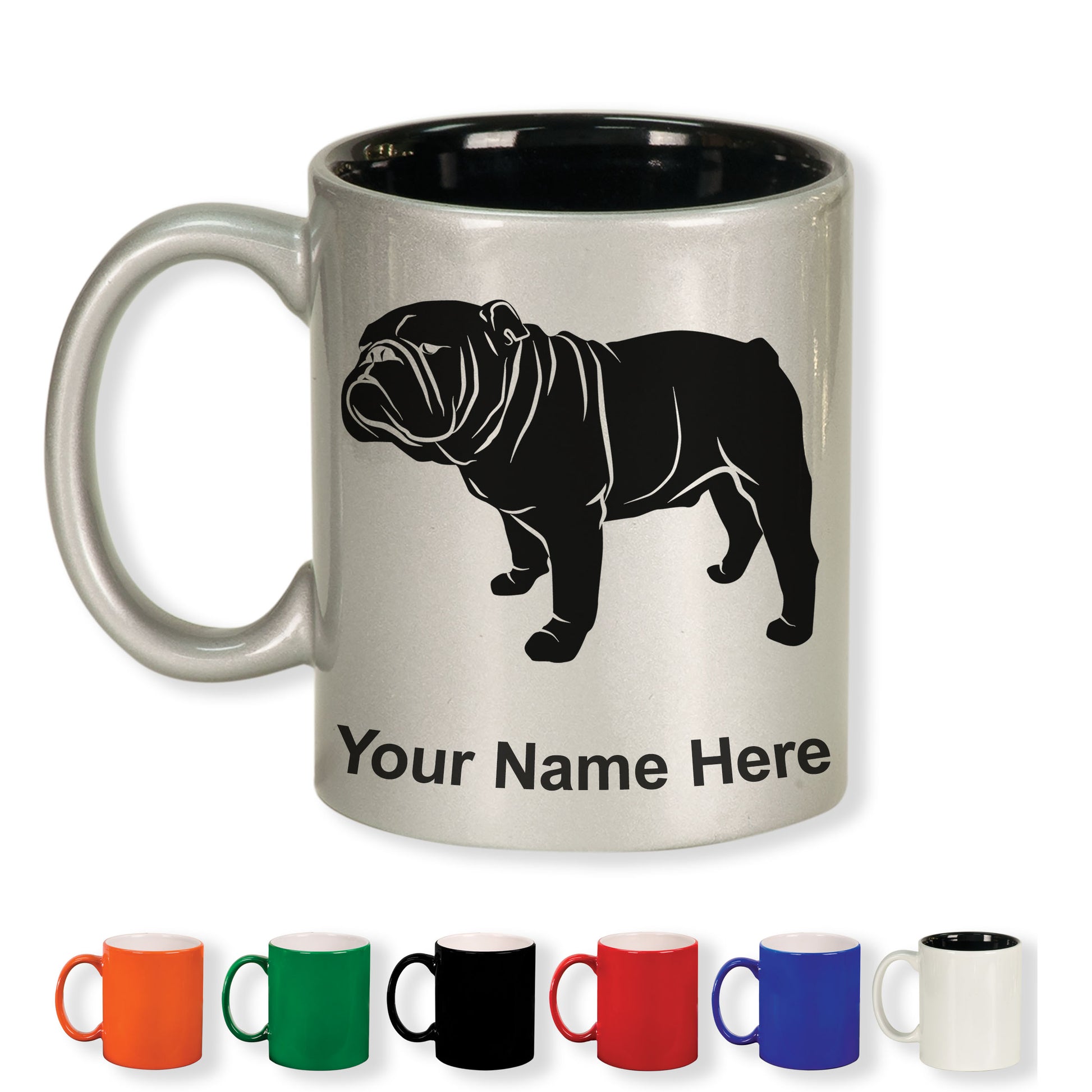 11oz Round Ceramic Coffee Mug, Bulldog Dog, Personalized Engraving Included
