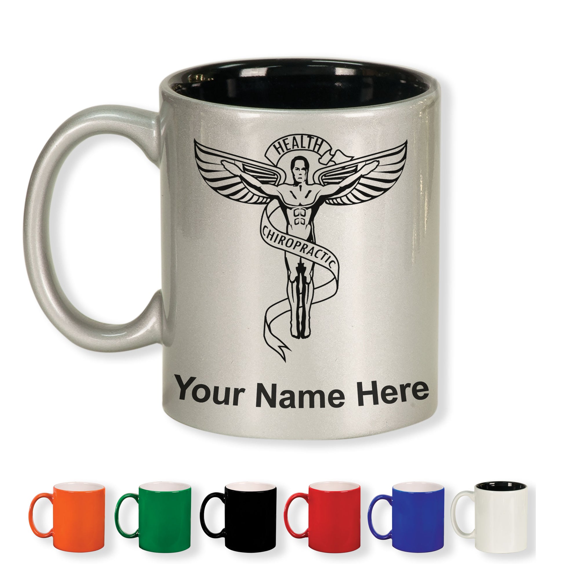 11oz Round Ceramic Coffee Mug, Chiropractic Symbol, Personalized Engraving Included