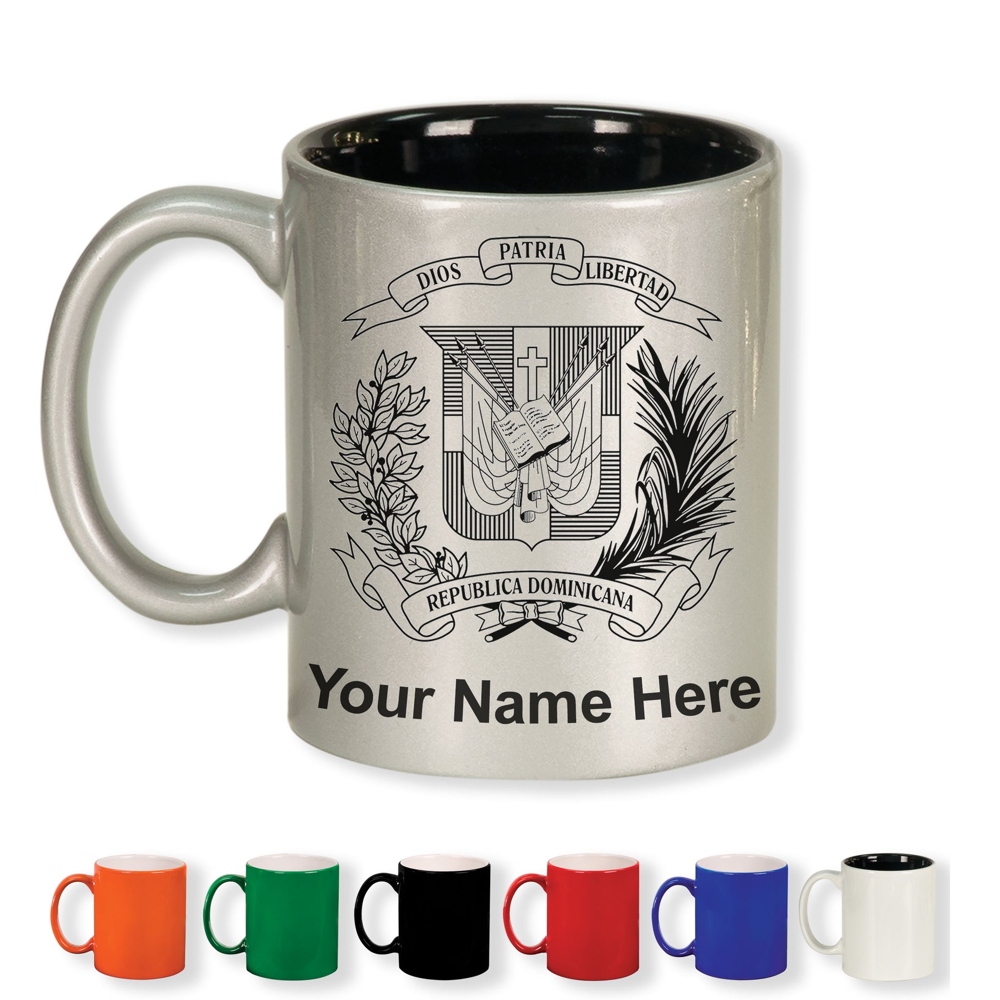 11oz Round Ceramic Coffee Mug, Coat of Arms Dominican Republic, Personalized Engraving Included