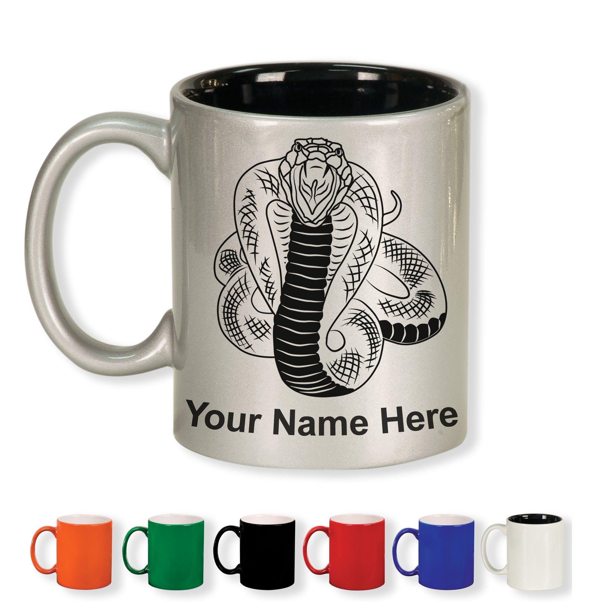 11oz Round Ceramic Coffee Mug, Cobra Snake, Personalized Engraving Included