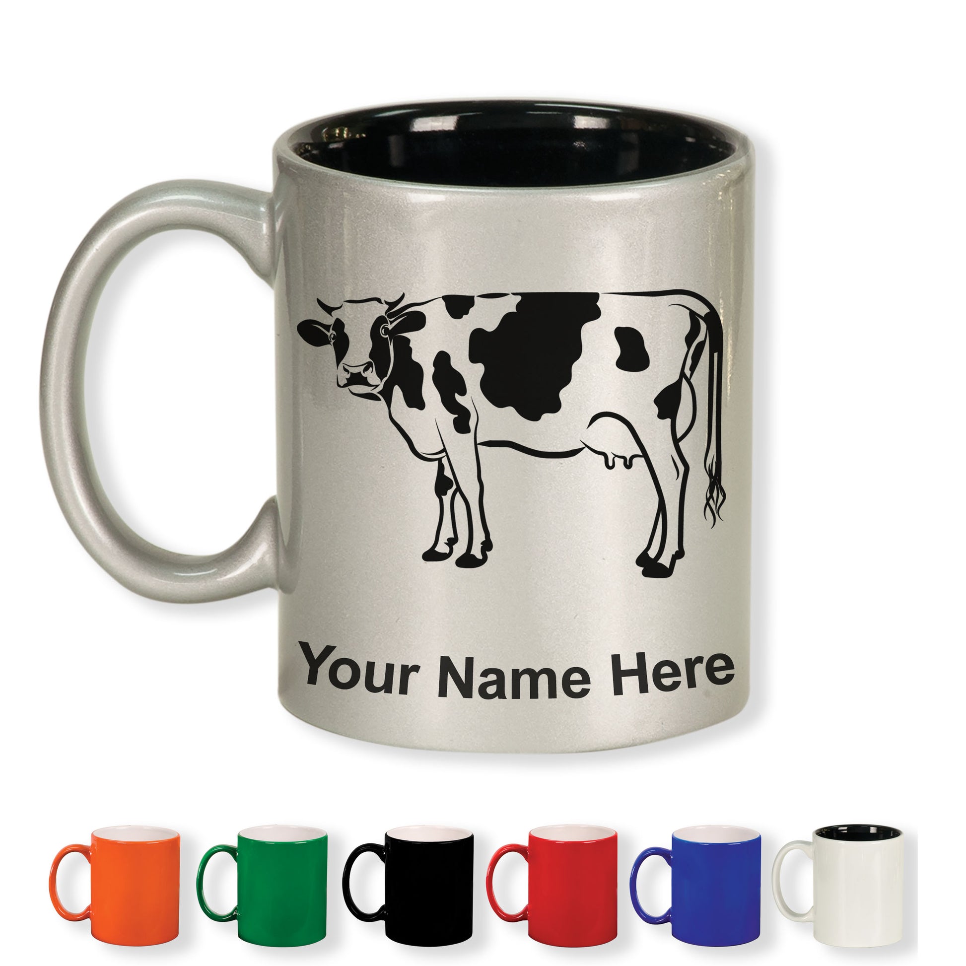 11oz Round Ceramic Coffee Mug, Cow, Personalized Engraving Included