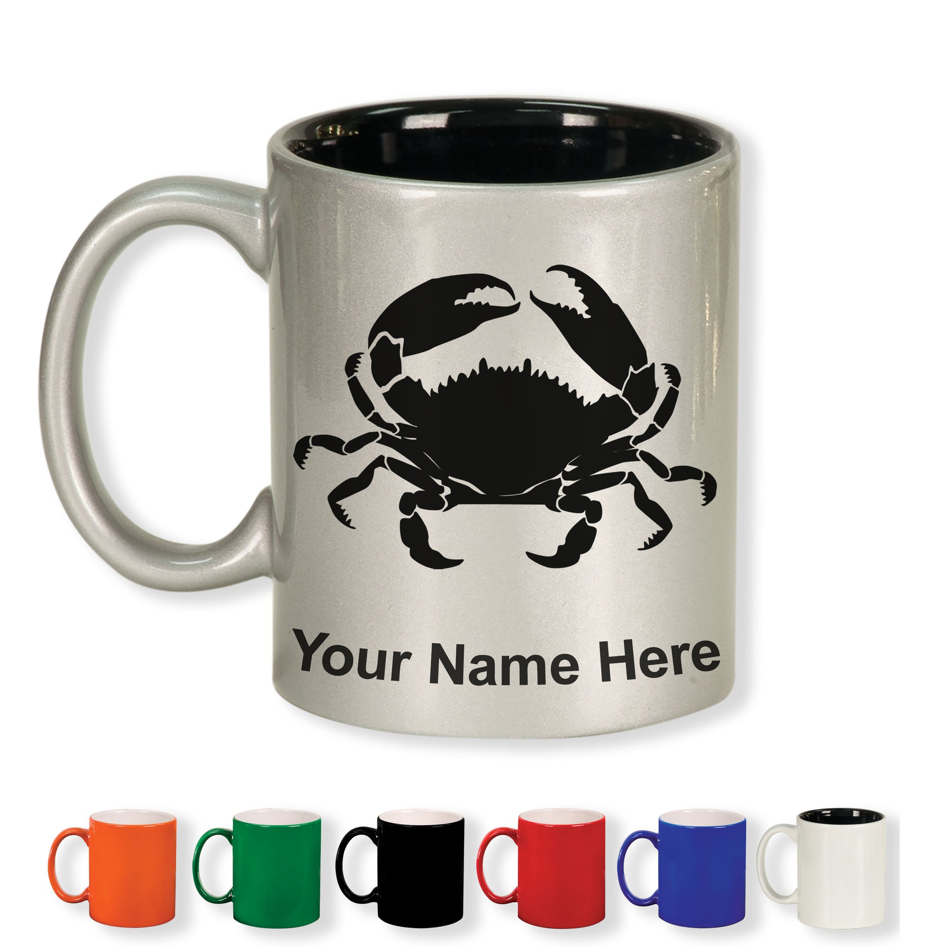 11oz Round Ceramic Coffee Mug, Crab, Personalized Engraving Included