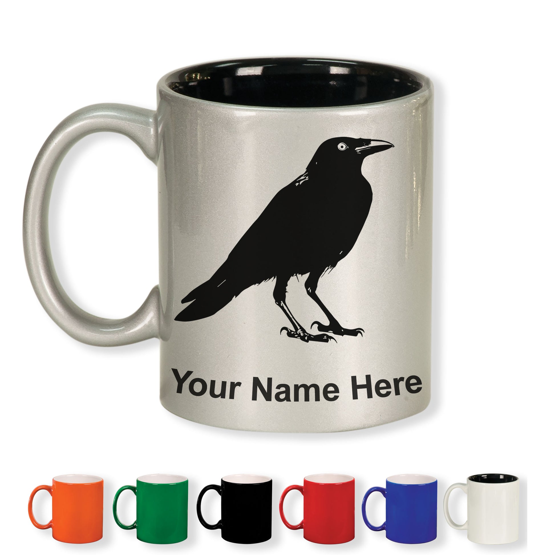 11oz Round Ceramic Coffee Mug, Crow, Personalized Engraving Included
