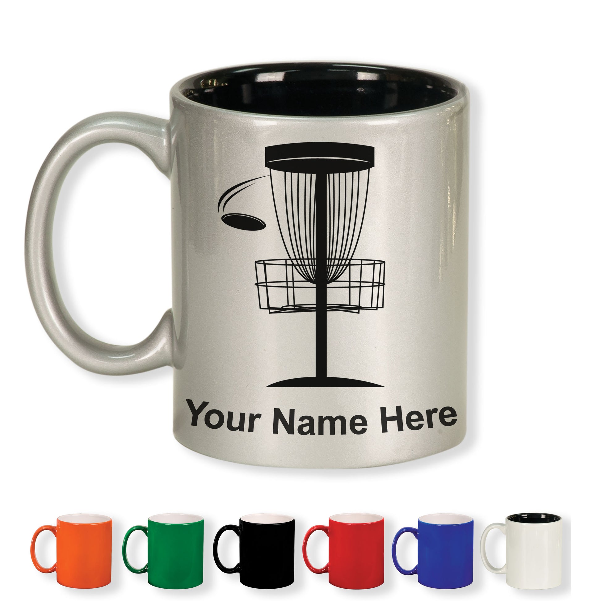 11oz Round Ceramic Coffee Mug, Disc Golf, Personalized Engraving Included