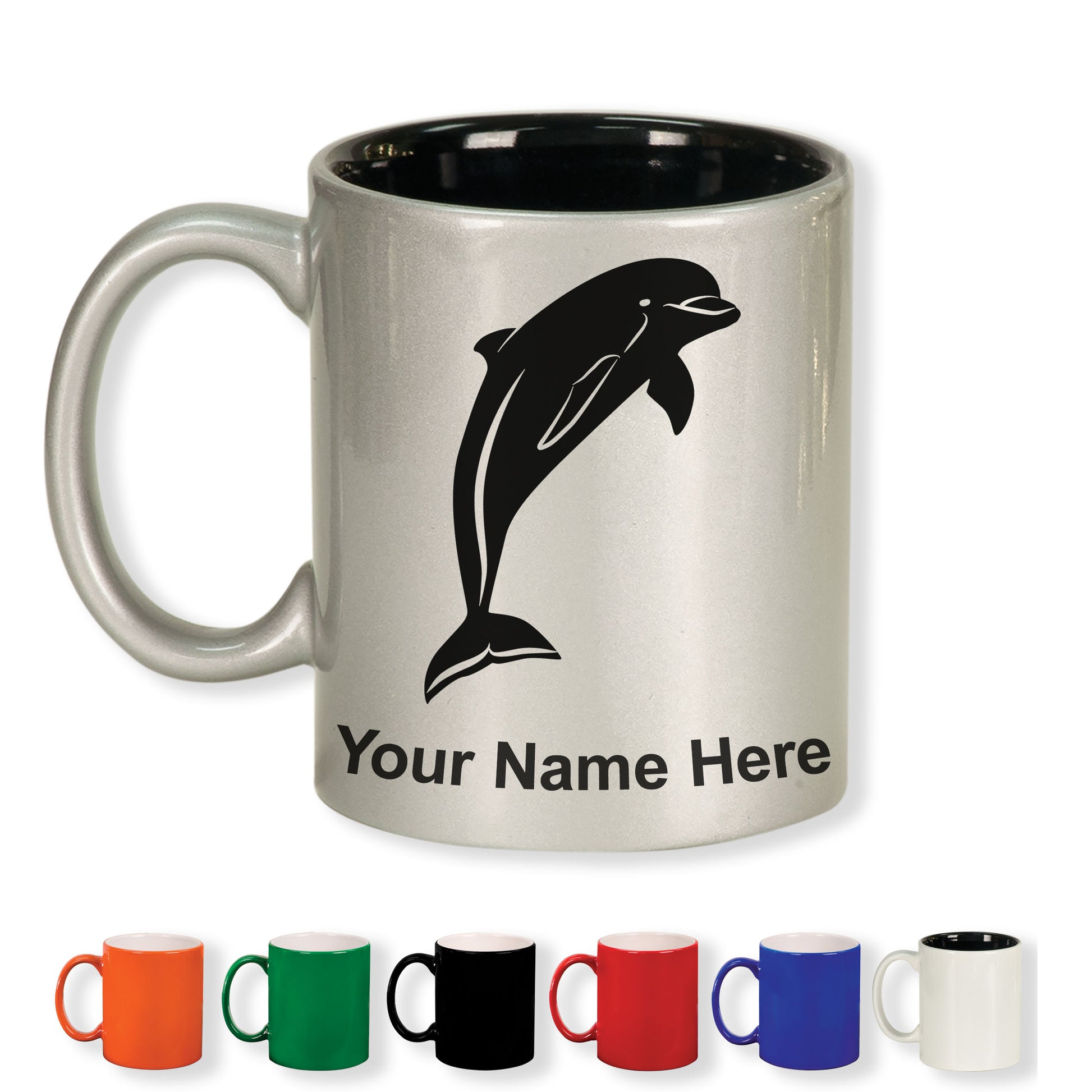 11oz Round Ceramic Coffee Mug, Dolphin, Personalized Engraving Included