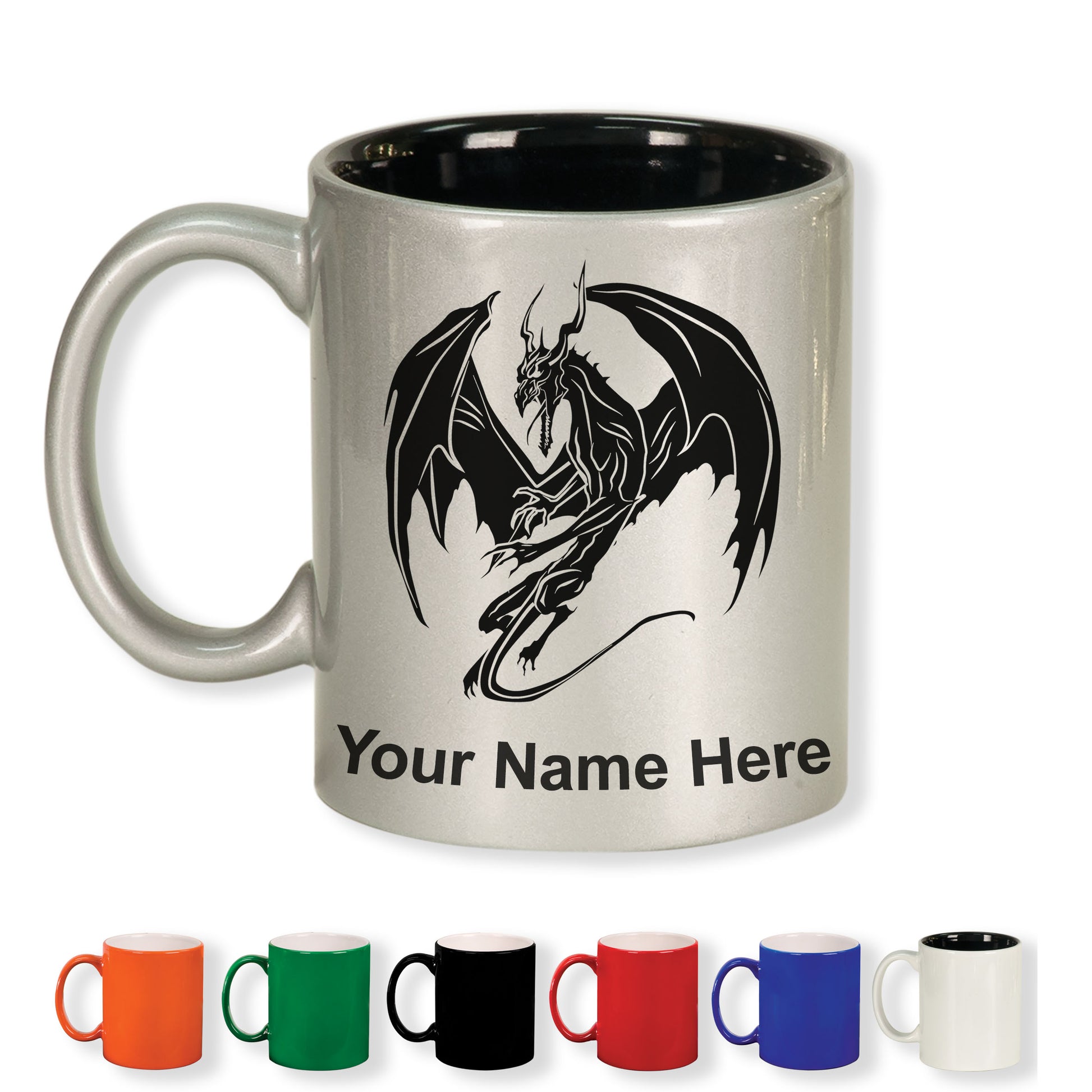 11oz Round Ceramic Coffee Mug, Dragon, Personalized Engraving Included