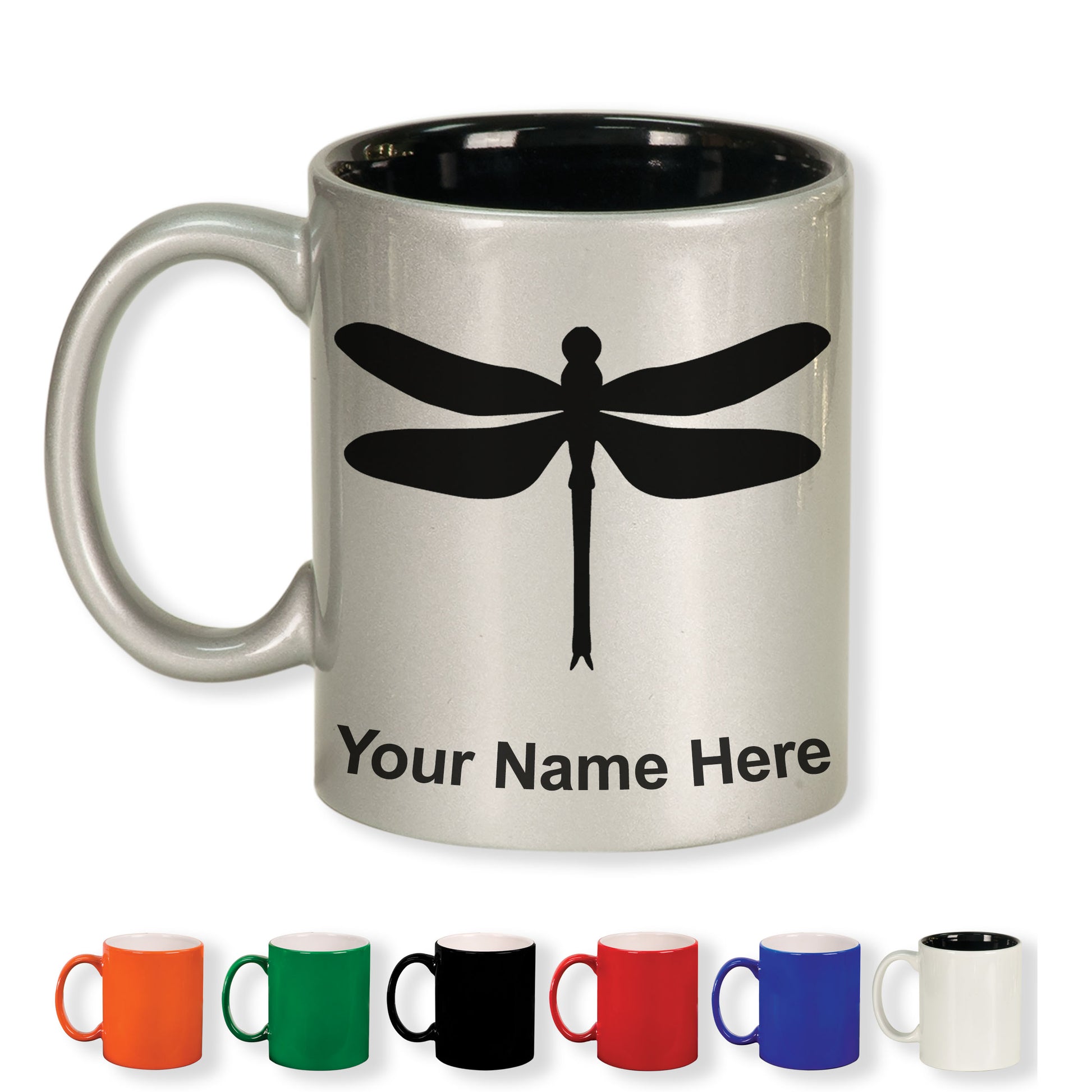 11oz Round Ceramic Coffee Mug, Dragonfly, Personalized Engraving Included