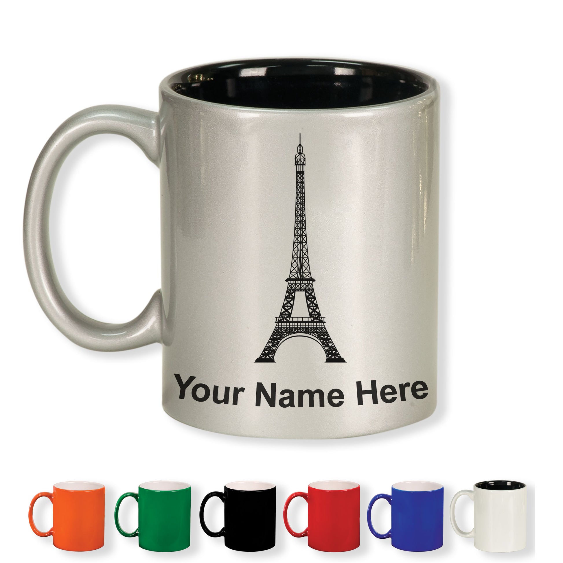 11oz Round Ceramic Coffee Mug, Eiffel Tower, Personalized Engraving Included