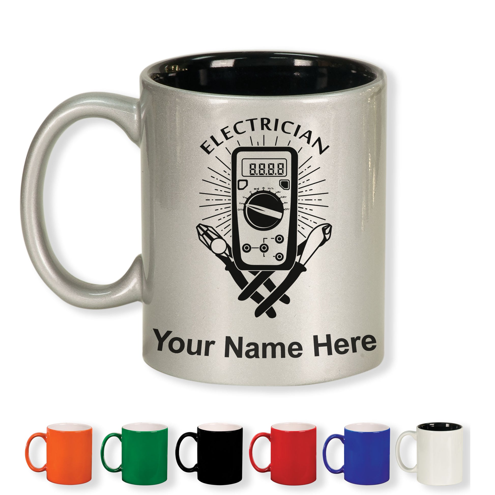 11oz Round Ceramic Coffee Mug, Electrician, Personalized Engraving Included