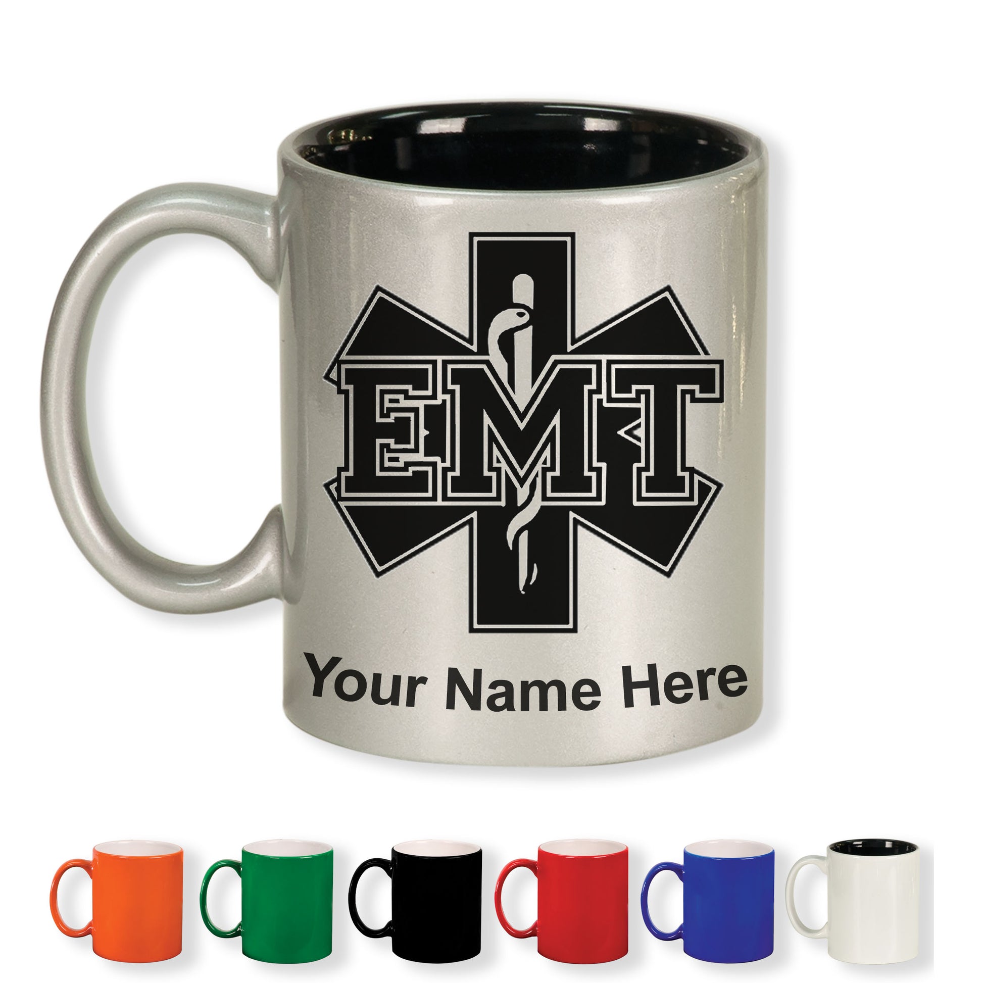 11oz Round Ceramic Coffee Mug, EMT Emergency Medical Technician, Personalized Engraving Included