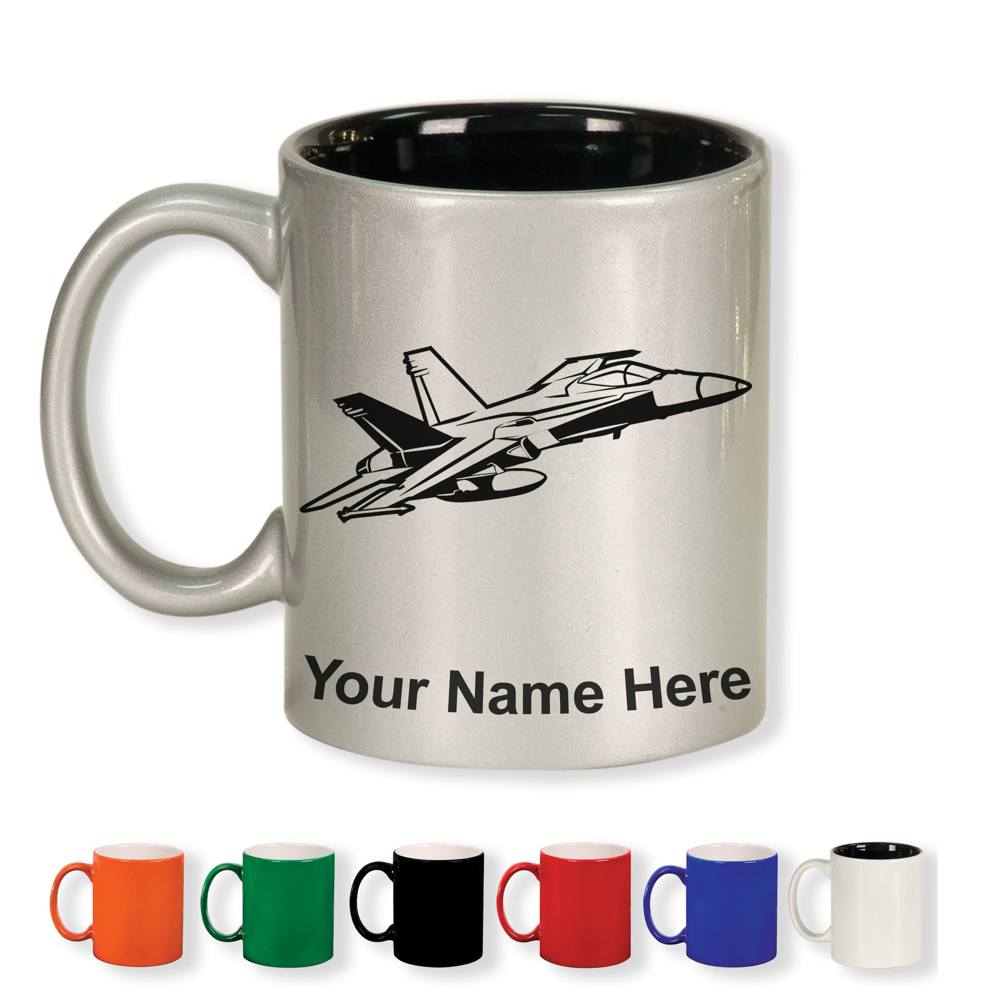 11oz Round Ceramic Coffee Mug, Fighter Jet 2, Personalized Engraving Included