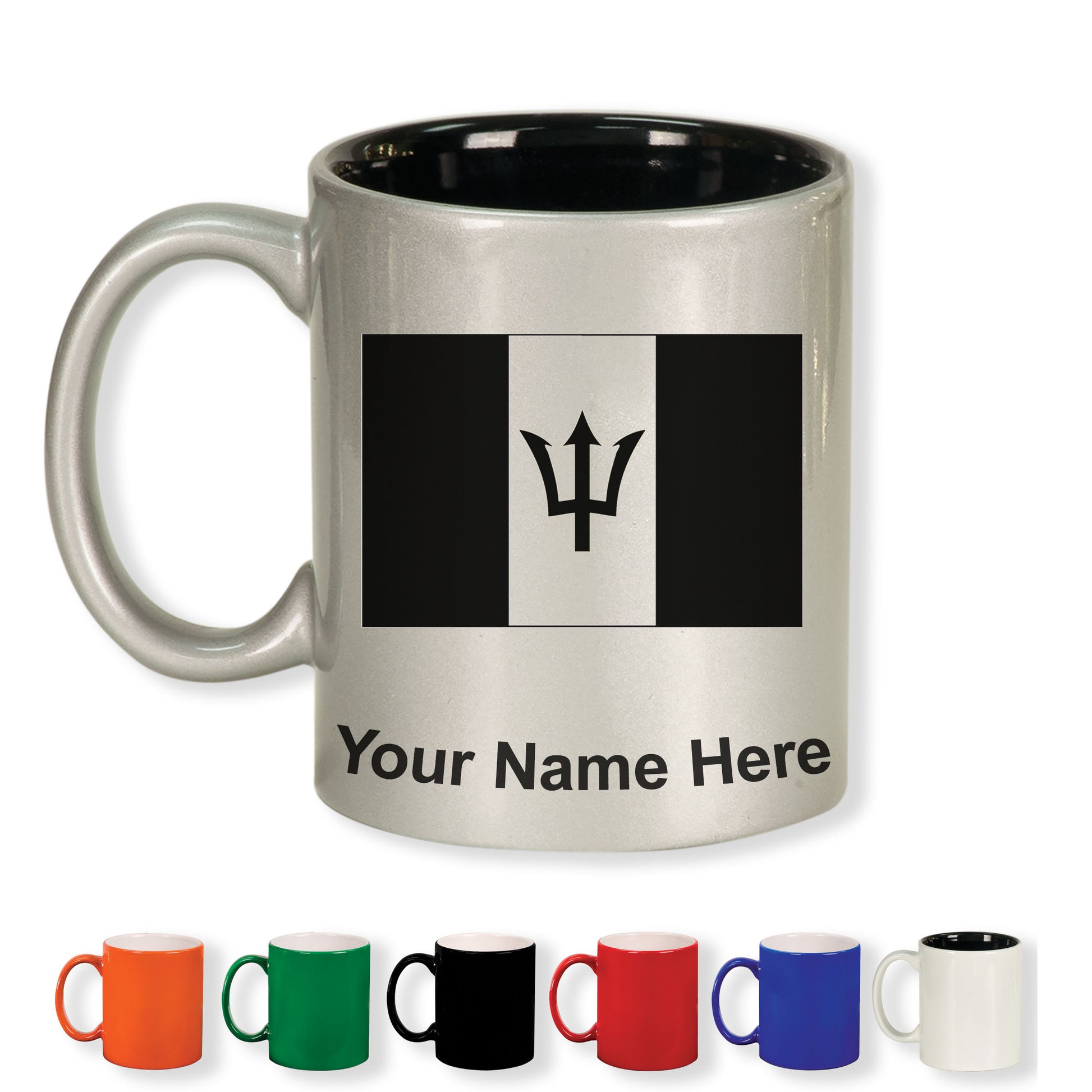 11oz Round Ceramic Coffee Mug, Flag of Barbados, Personalized Engraving Included