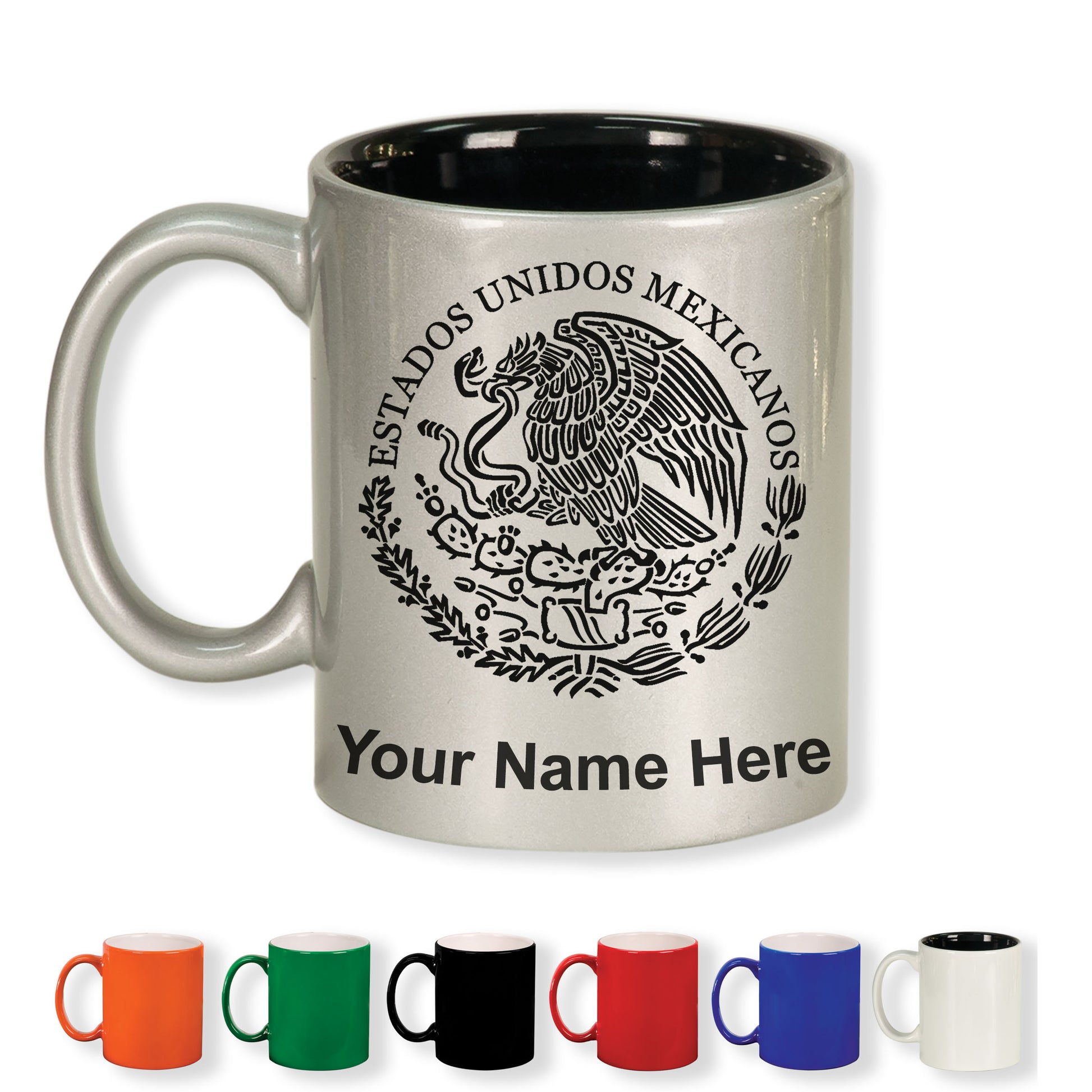 11oz Round Ceramic Coffee Mug, Flag of Mexico, Personalized Engraving Included