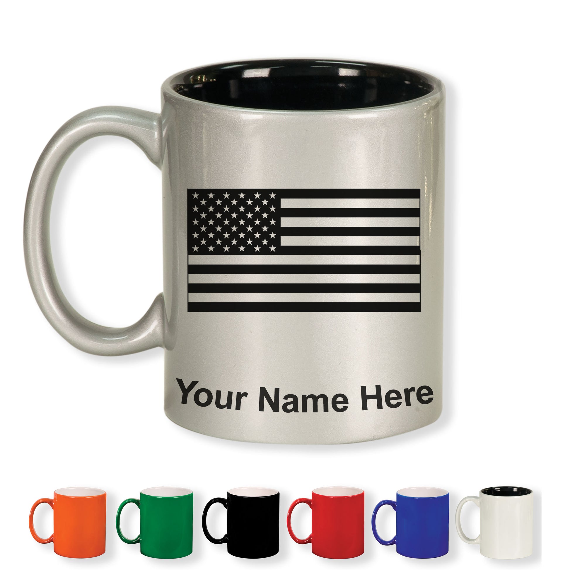 11oz Round Ceramic Coffee Mug, Flag of the United States, Personalized Engraving Included