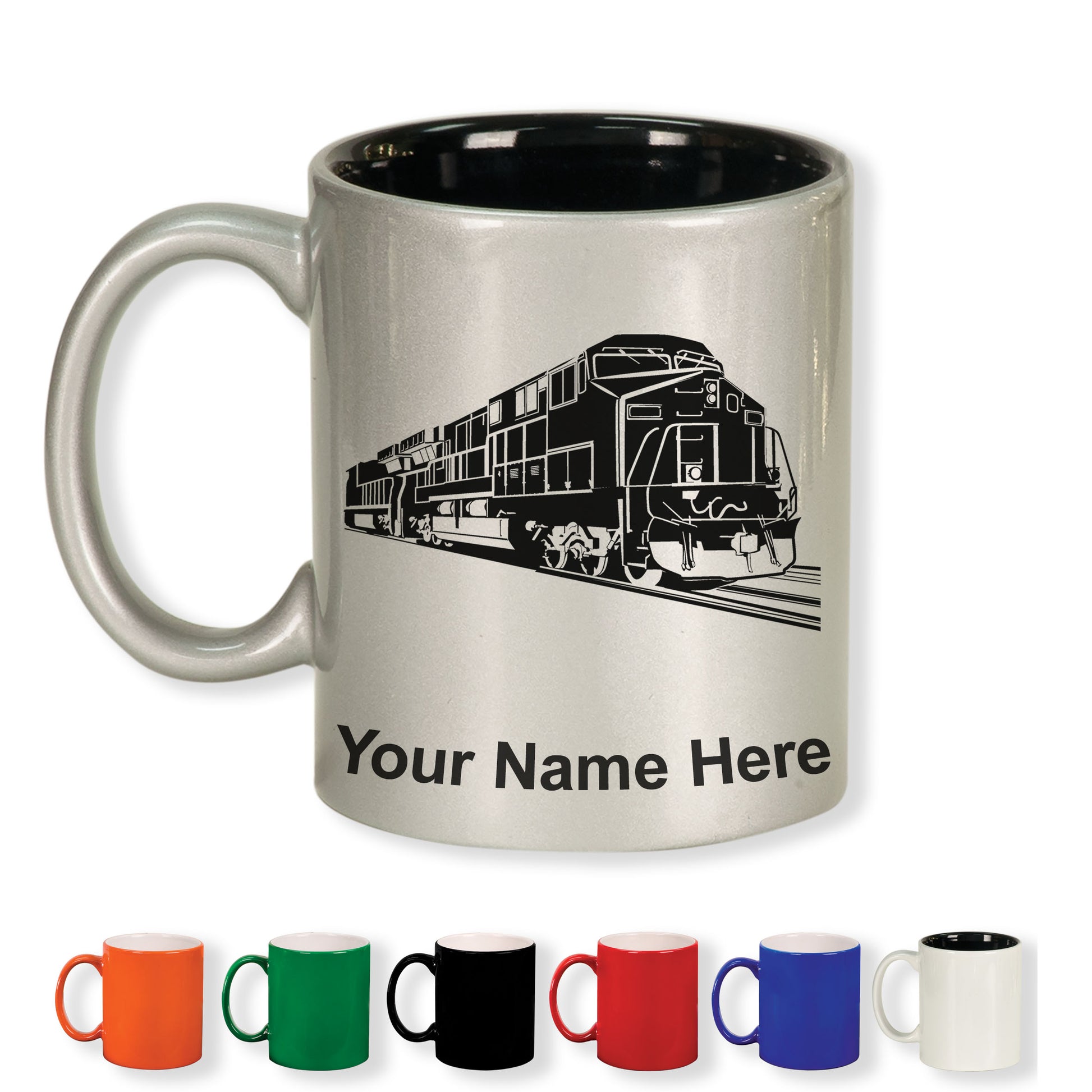 11oz Round Ceramic Coffee Mug, Freight Train, Personalized Engraving Included