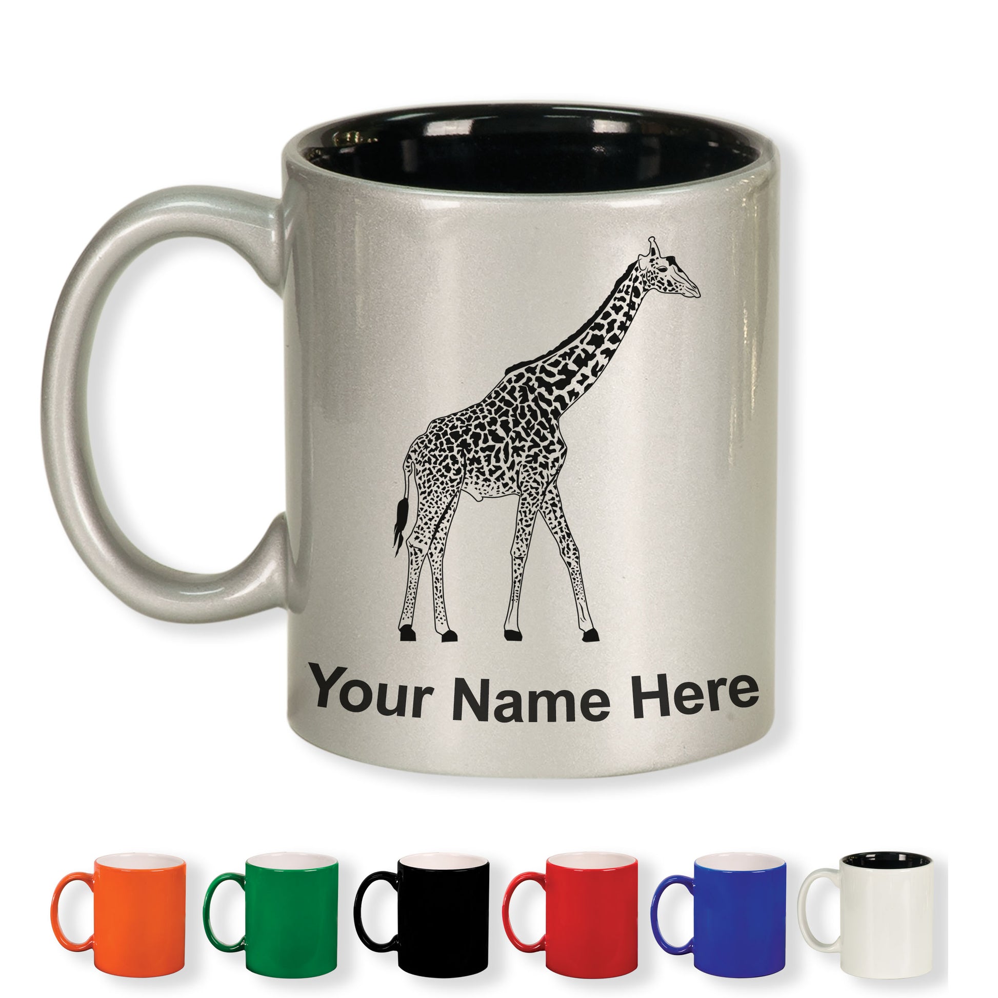 11oz Round Ceramic Coffee Mug, Giraffe, Personalized Engraving Included