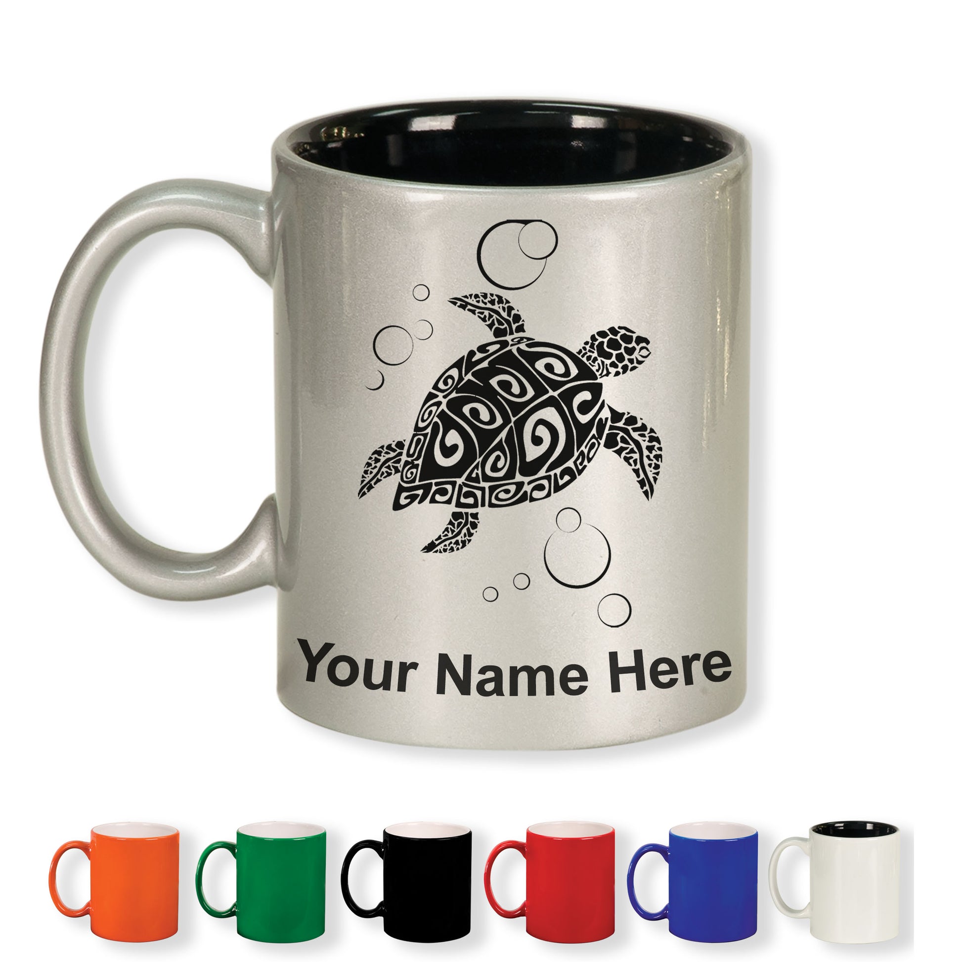 11oz Round Ceramic Coffee Mug, Hawaiian Sea Turtle, Personalized Engraving Included