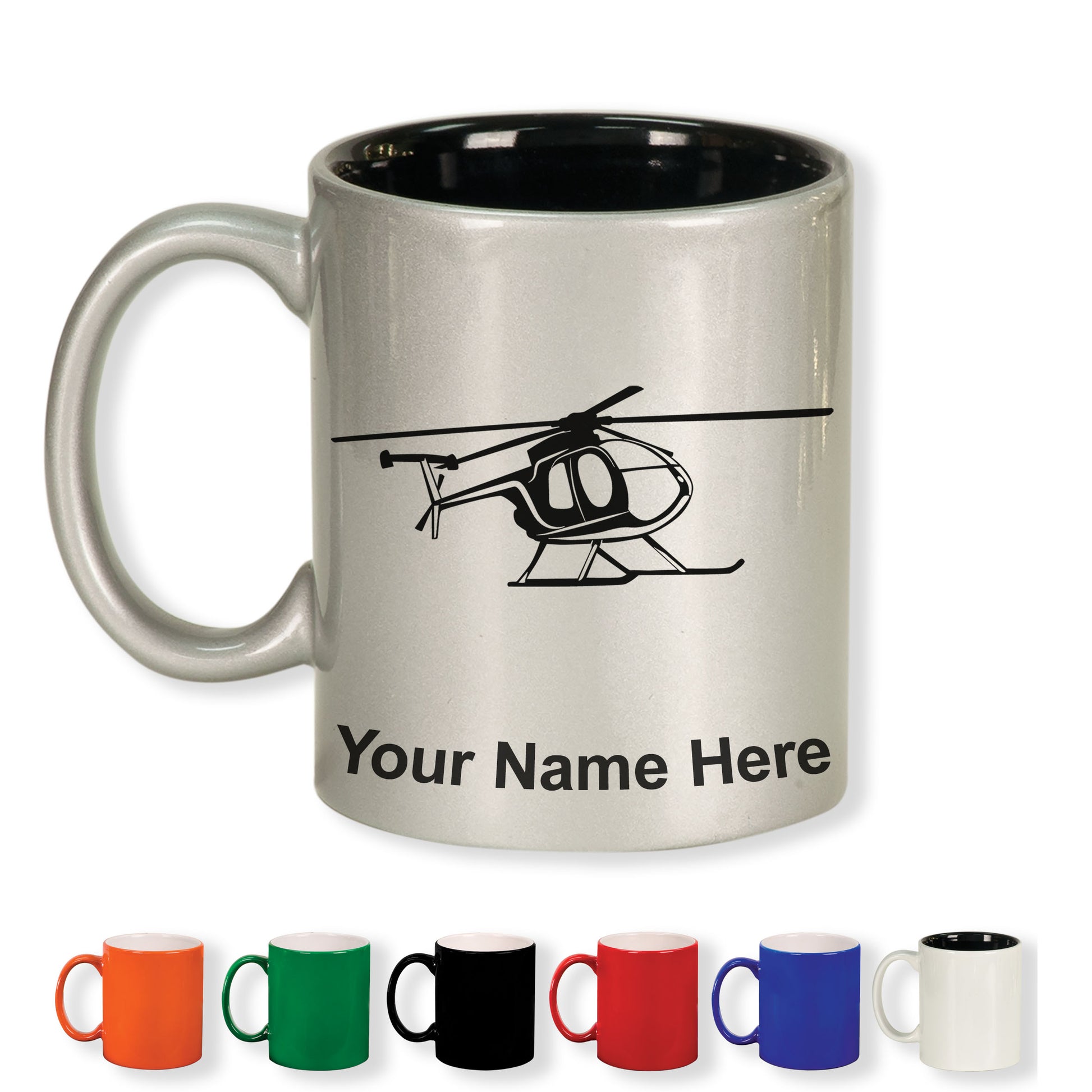 11oz Round Ceramic Coffee Mug, Helicopter 1, Personalized Engraving Included