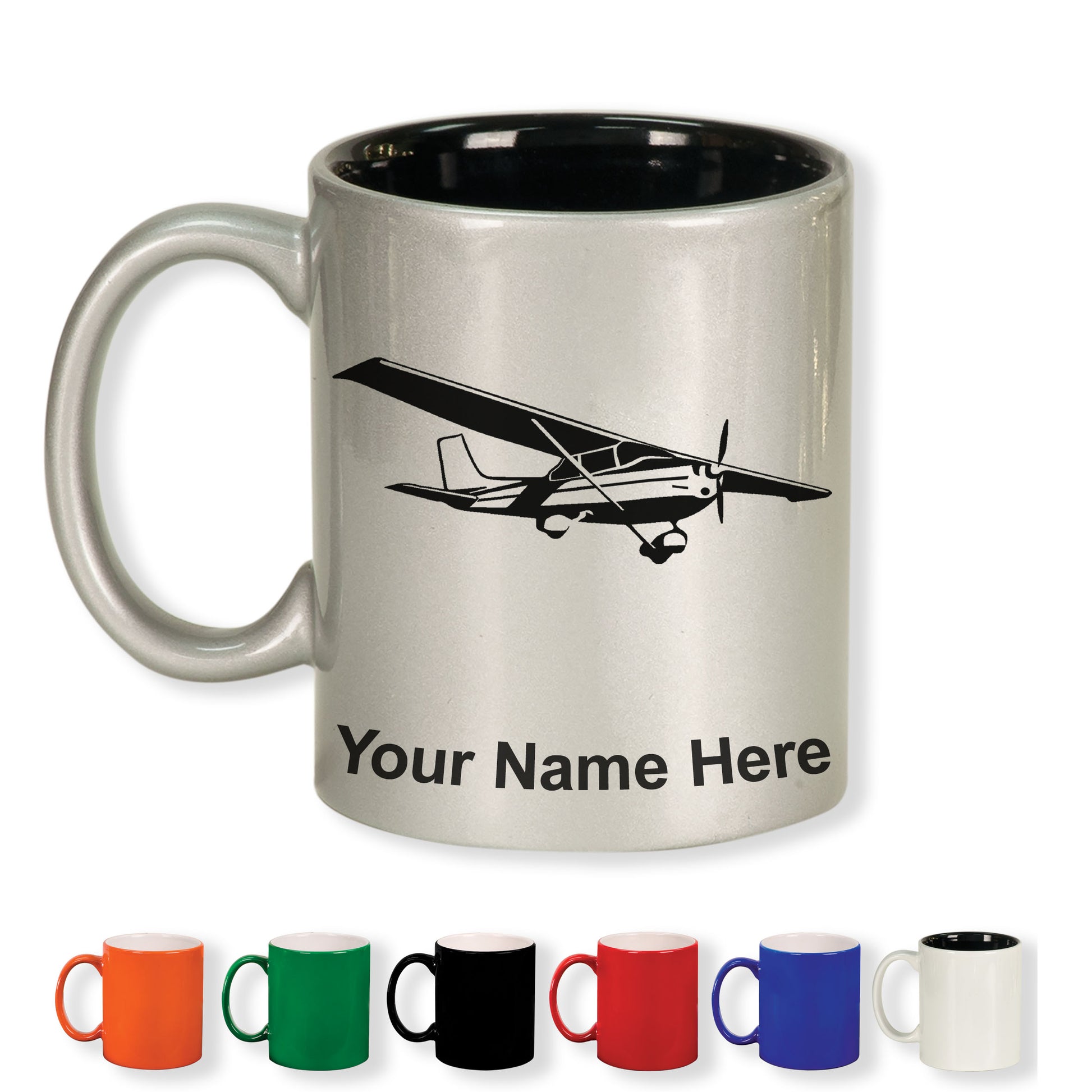 11oz Round Ceramic Coffee Mug, High Wing Airplane, Personalized Engraving Included