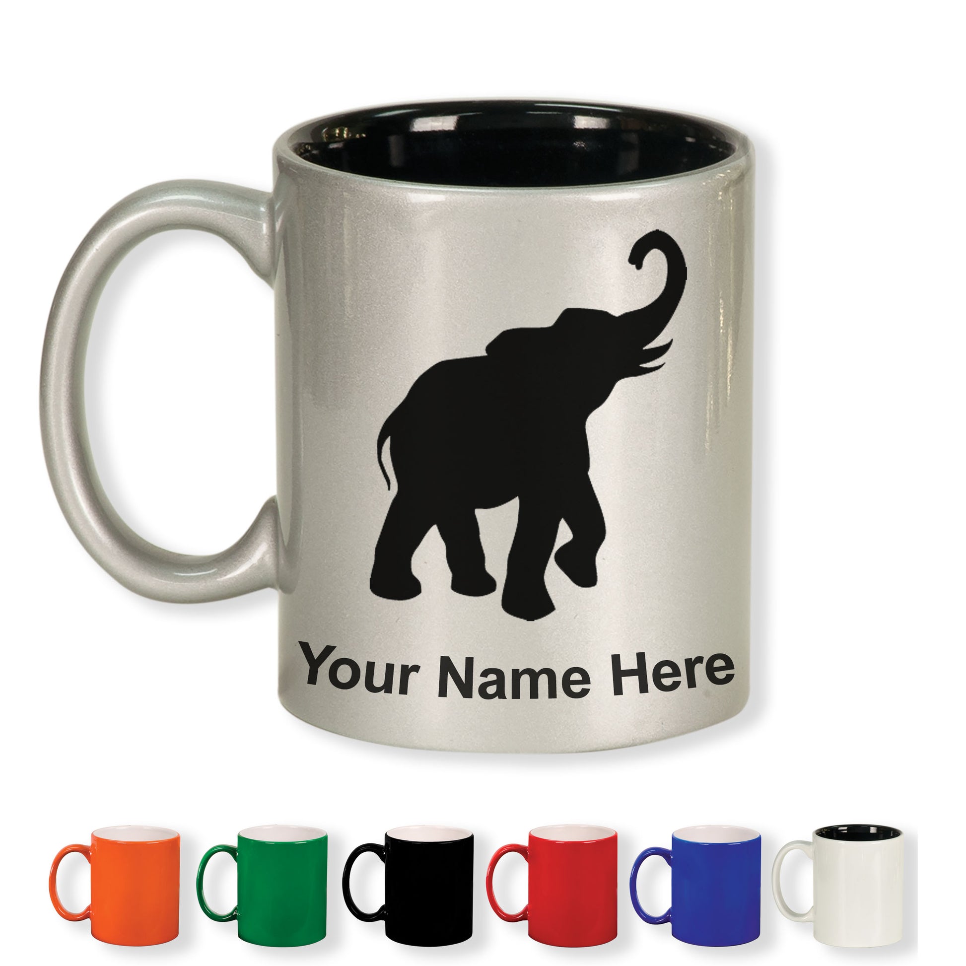 11oz Round Ceramic Coffee Mug, Indian Elephant, Personalized Engraving Included
