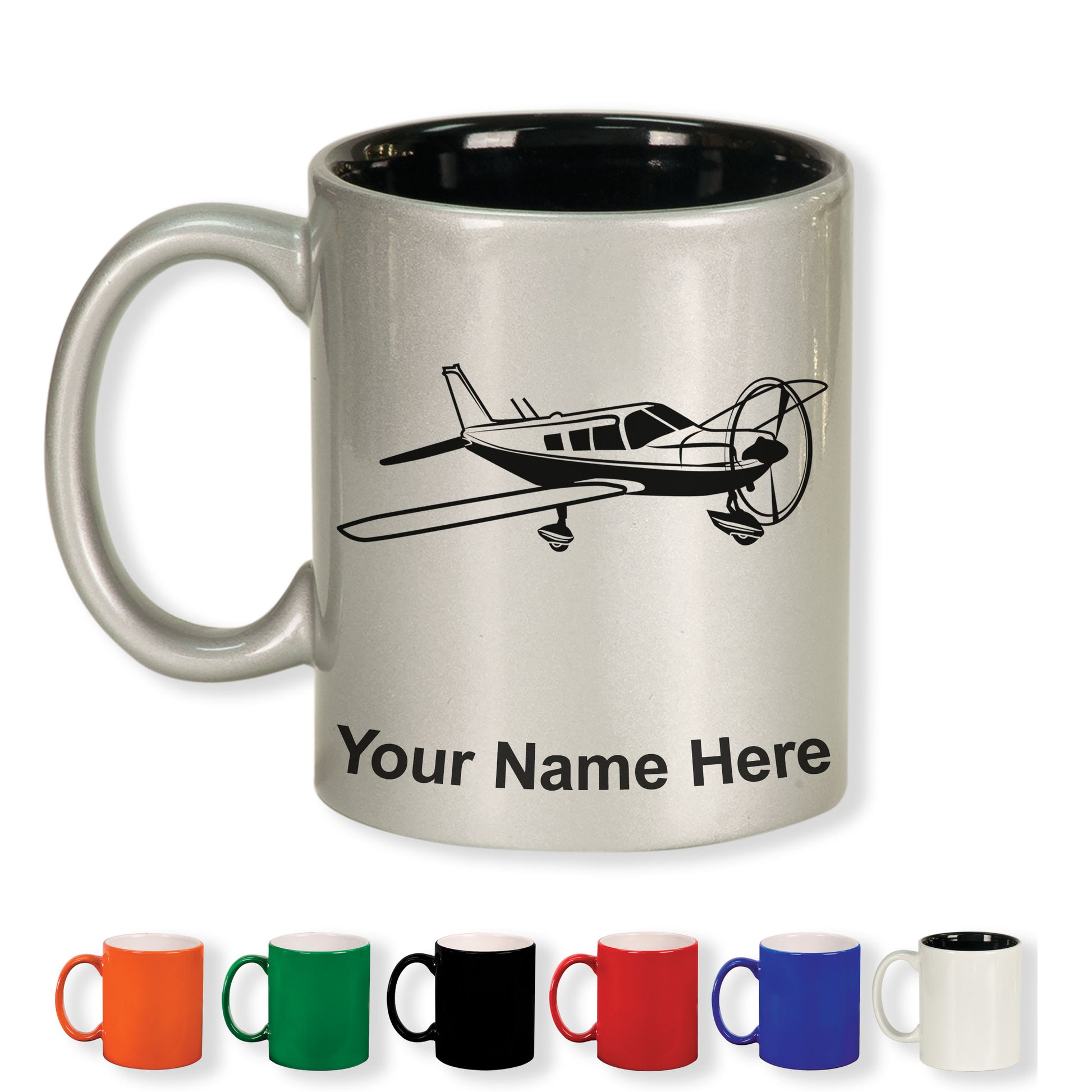 11oz Round Ceramic Coffee Mug, Low Wing Airplane, Personalized Engraving Included