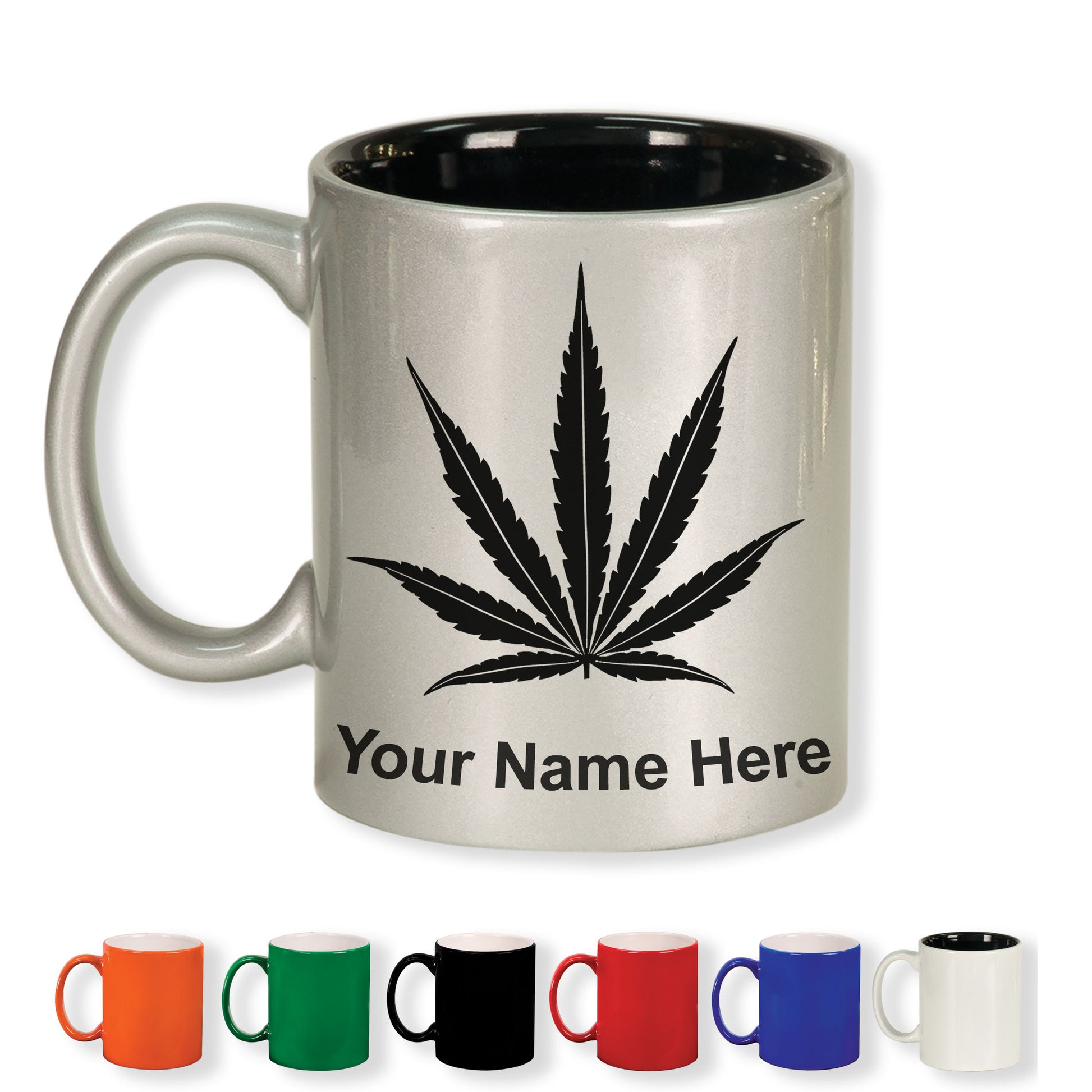 11oz Round Ceramic Coffee Mug, Marijuana leaf, Personalized Engraving Included