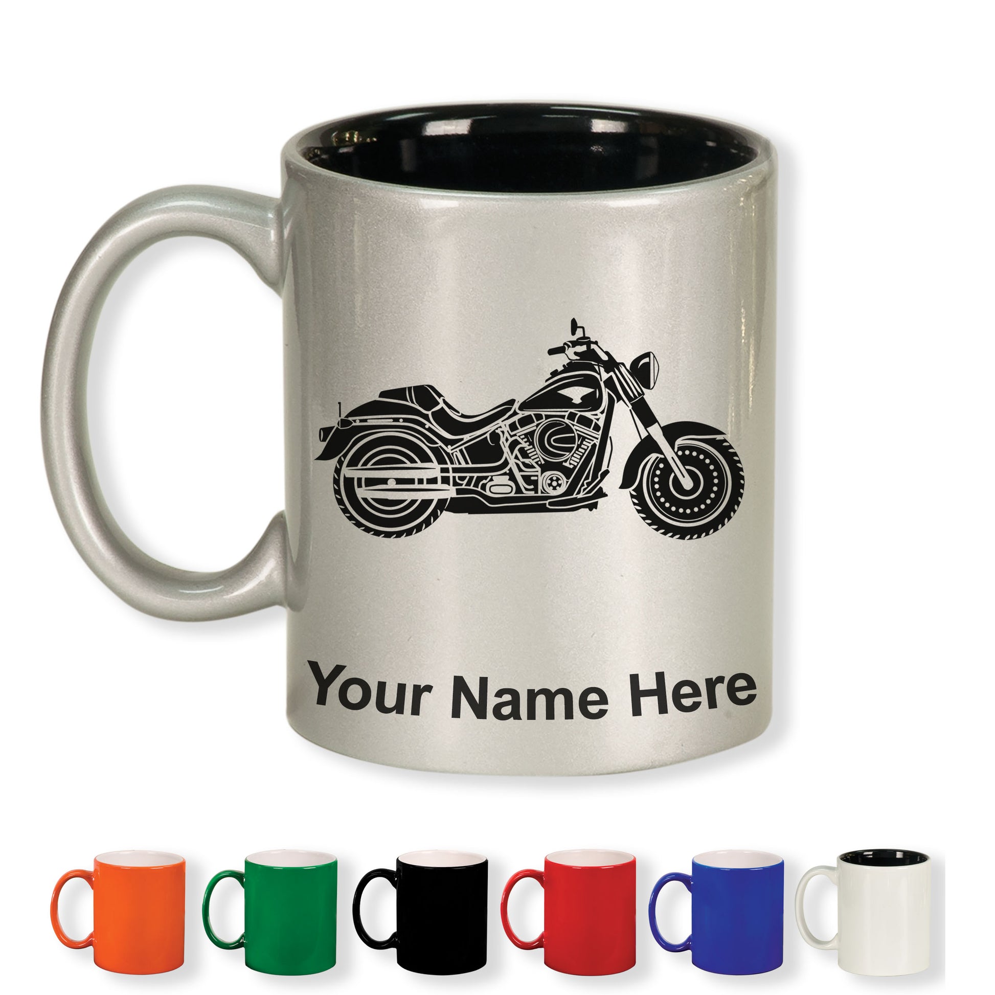 11oz Round Ceramic Coffee Mug, Motorcycle, Personalized Engraving Included