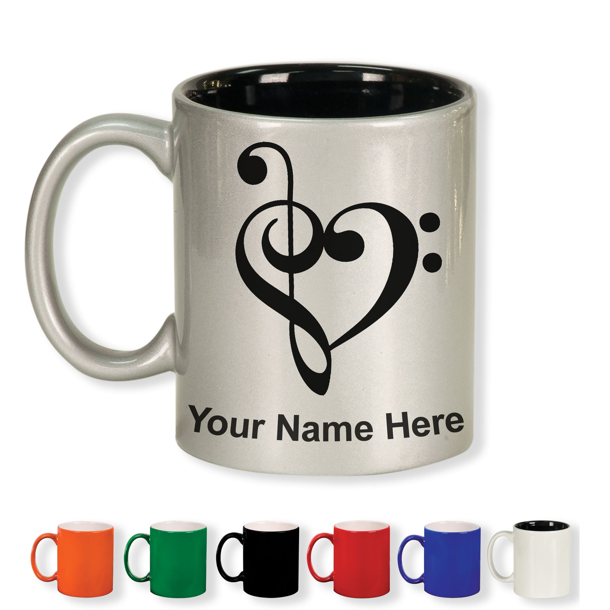 11oz Round Ceramic Coffee Mug, Music Heart, Personalized Engraving Included