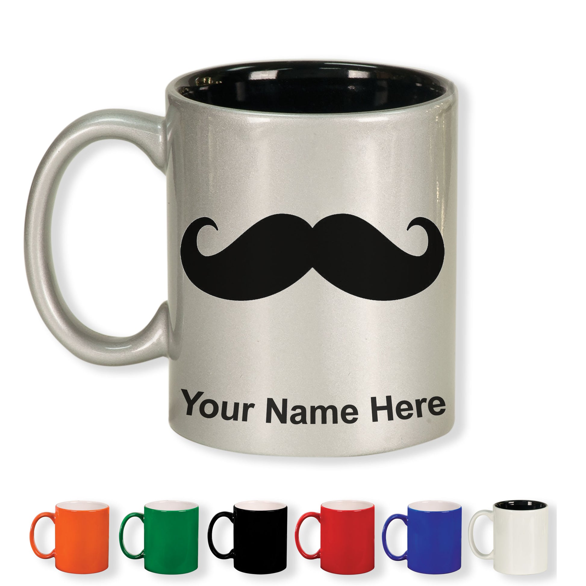 11oz Round Ceramic Coffee Mug, Mustache, Personalized Engraving Included