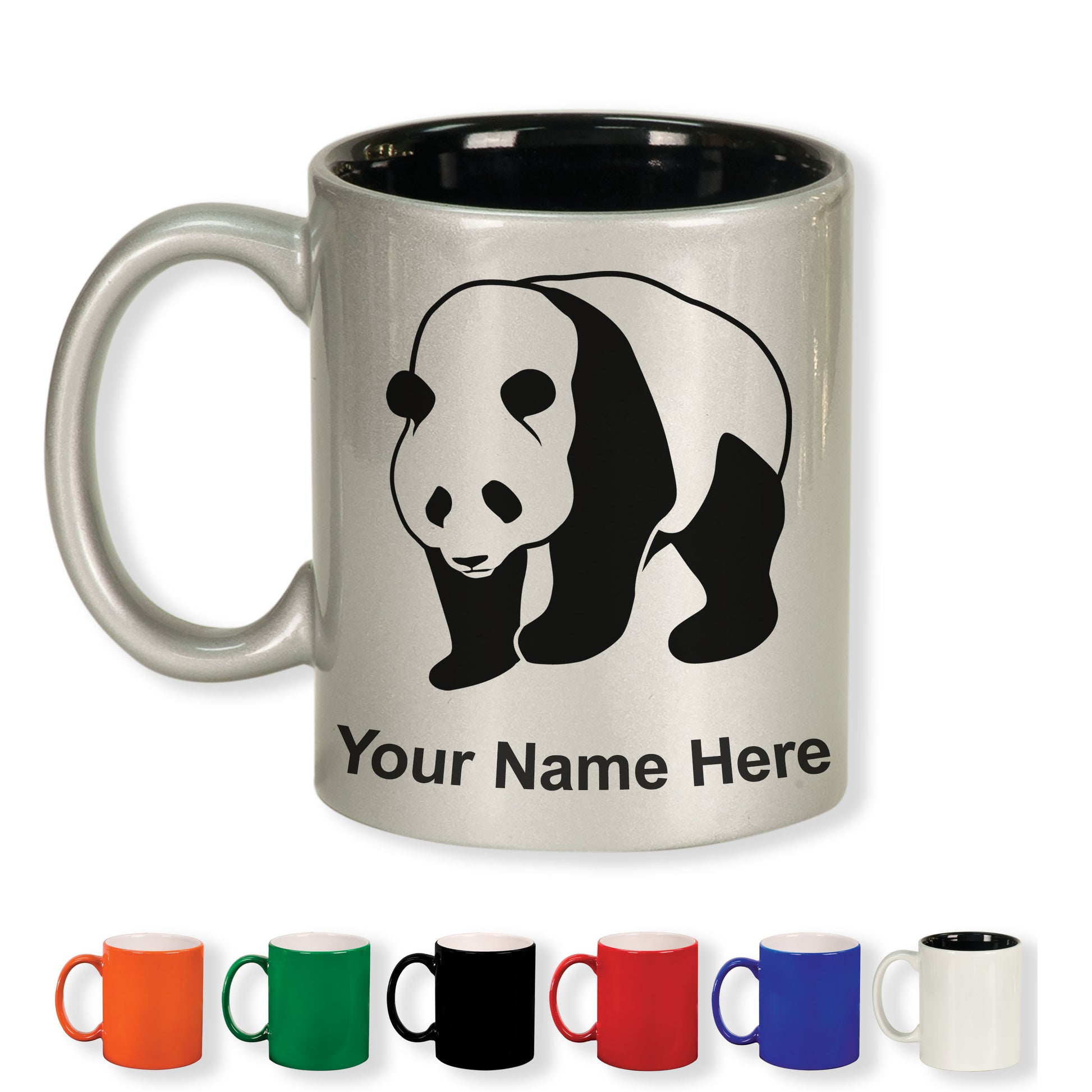 11oz Round Ceramic Coffee Mug, Panda Bear, Personalized Engraving Included