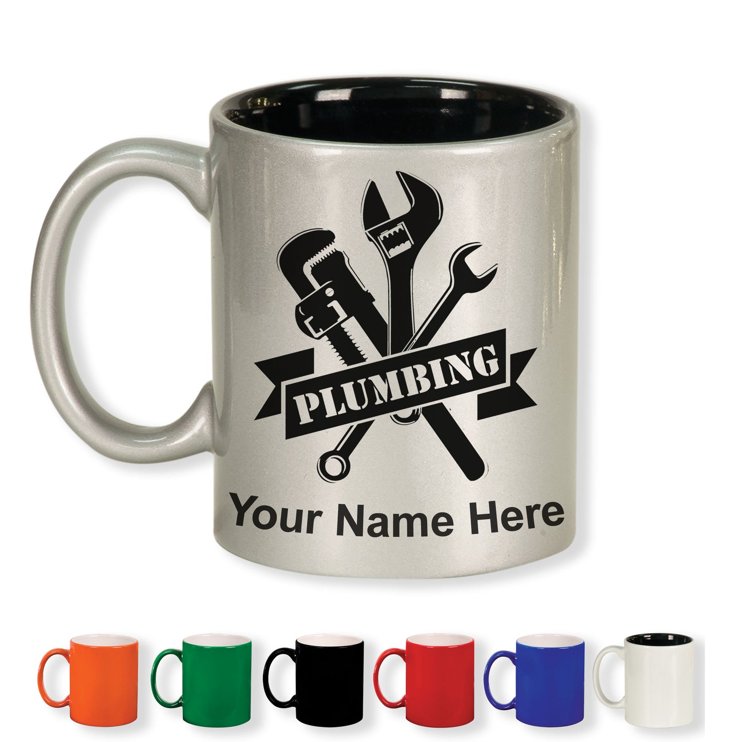 11oz Round Ceramic Coffee Mug, Plumbing, Personalized Engraving Included