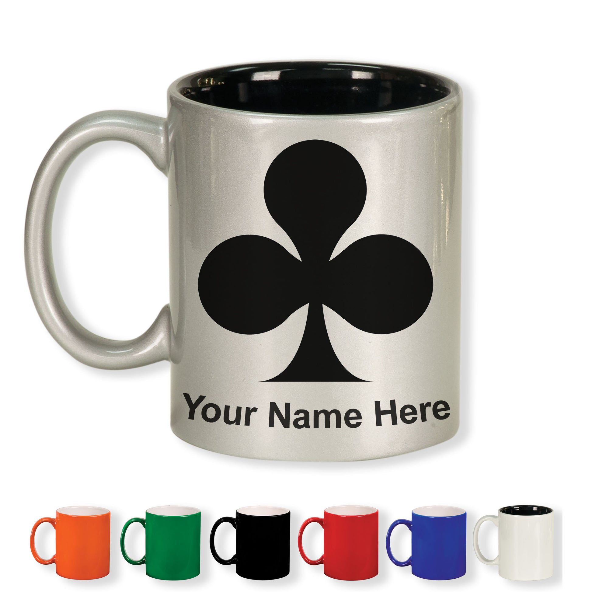 11oz Round Ceramic Coffee Mug, Poker Clubs, Personalized Engraving Included