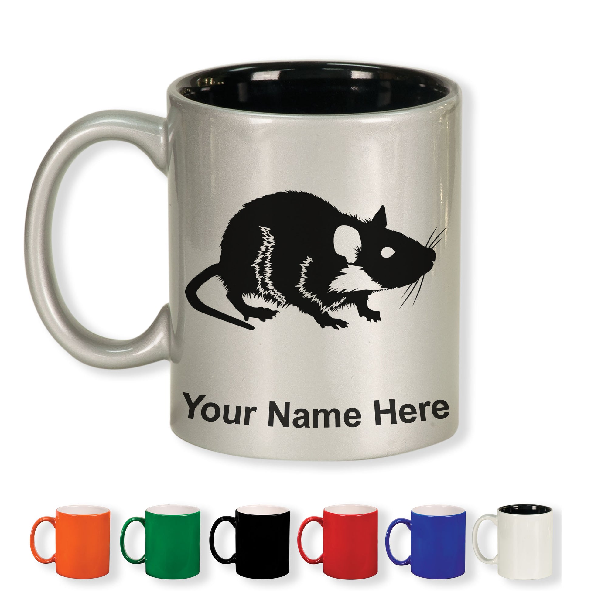 11oz Round Ceramic Coffee Mug, Rat, Personalized Engraving Included