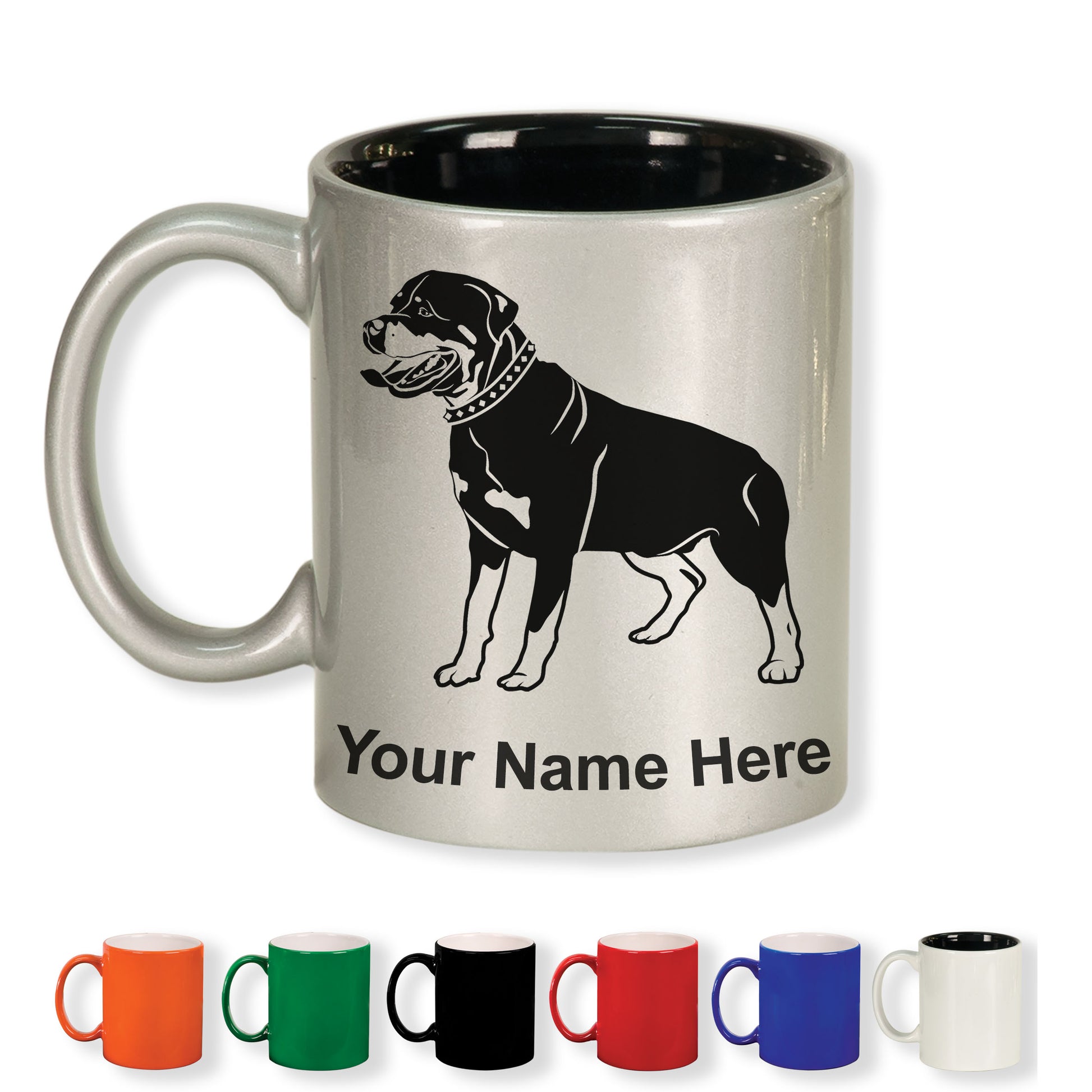 11oz Round Ceramic Coffee Mug, Rottweiler Dog, Personalized Engraving Included