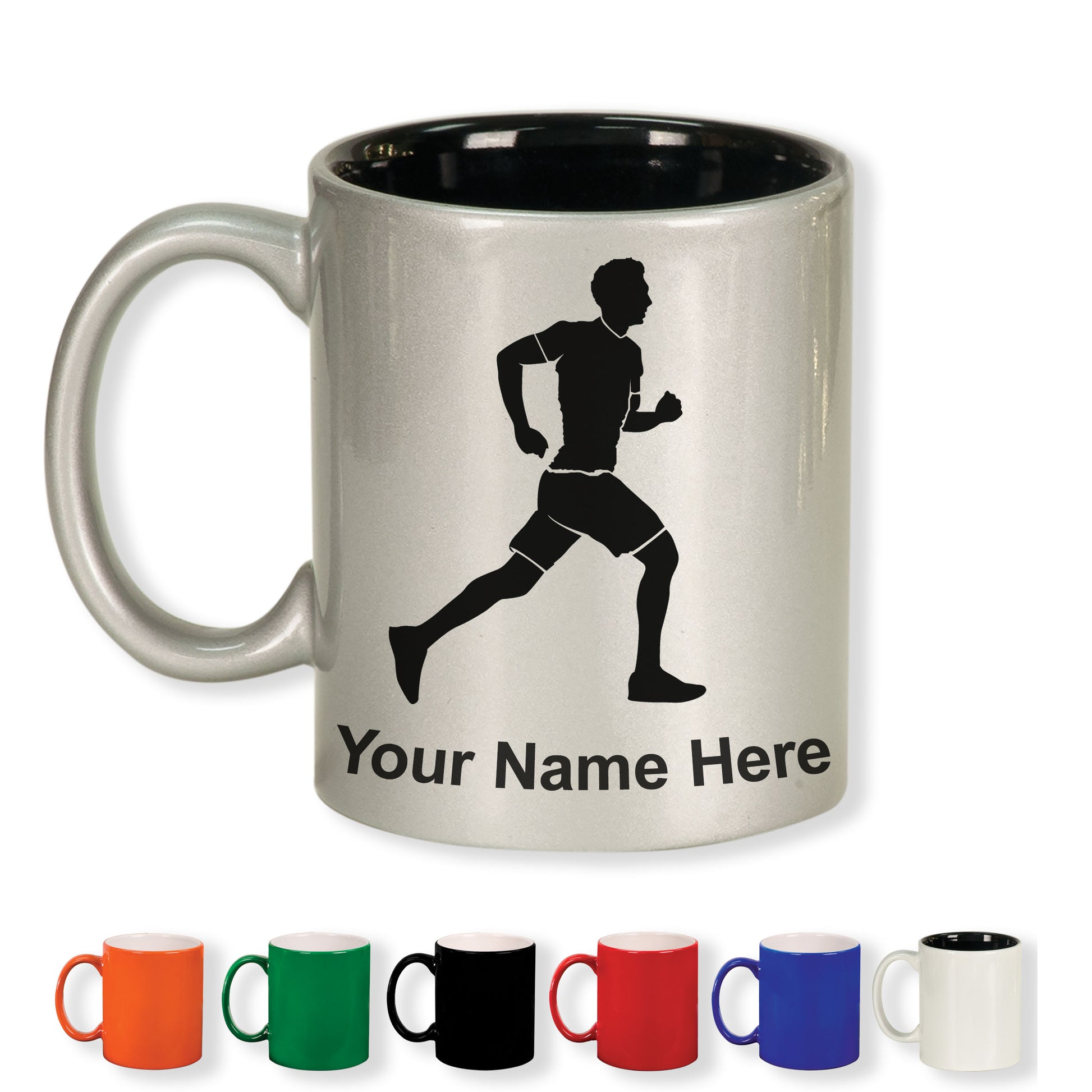 11oz Round Ceramic Coffee Mug, Running Man, Personalized Engraving Included
