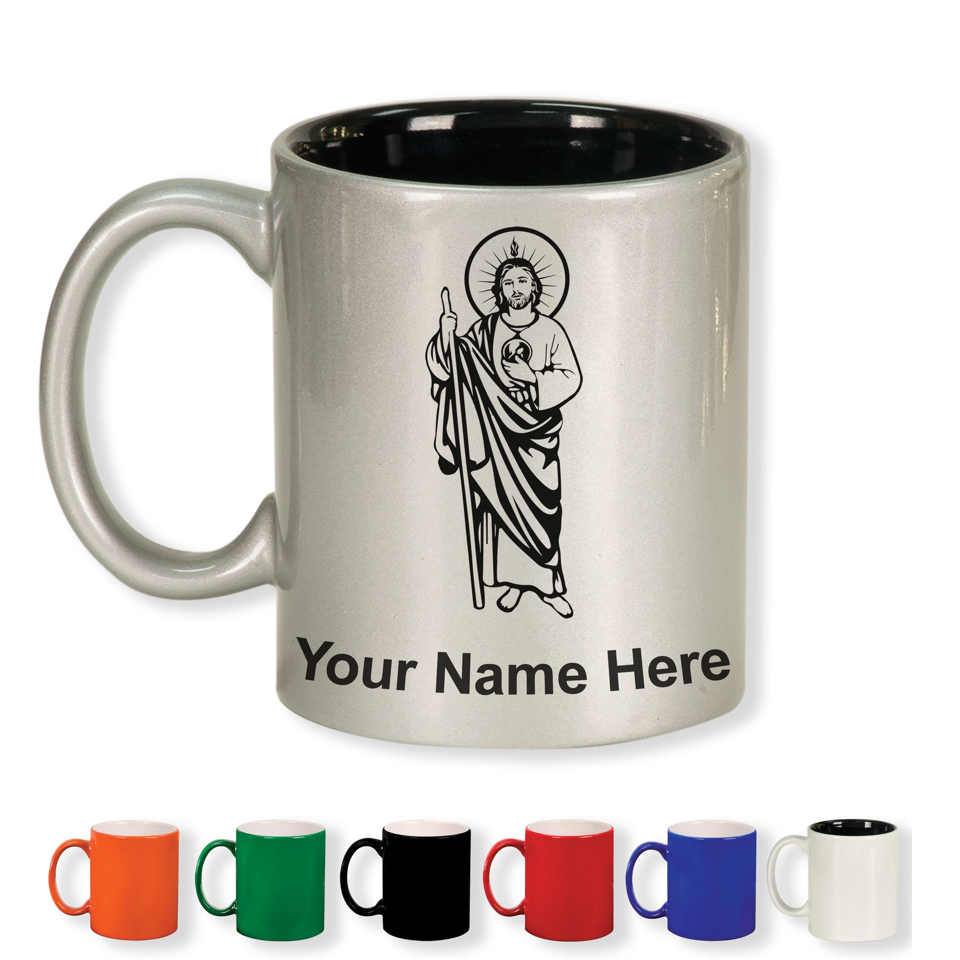 11oz Round Ceramic Coffee Mug, Saint Jude, Personalized Engraving Included