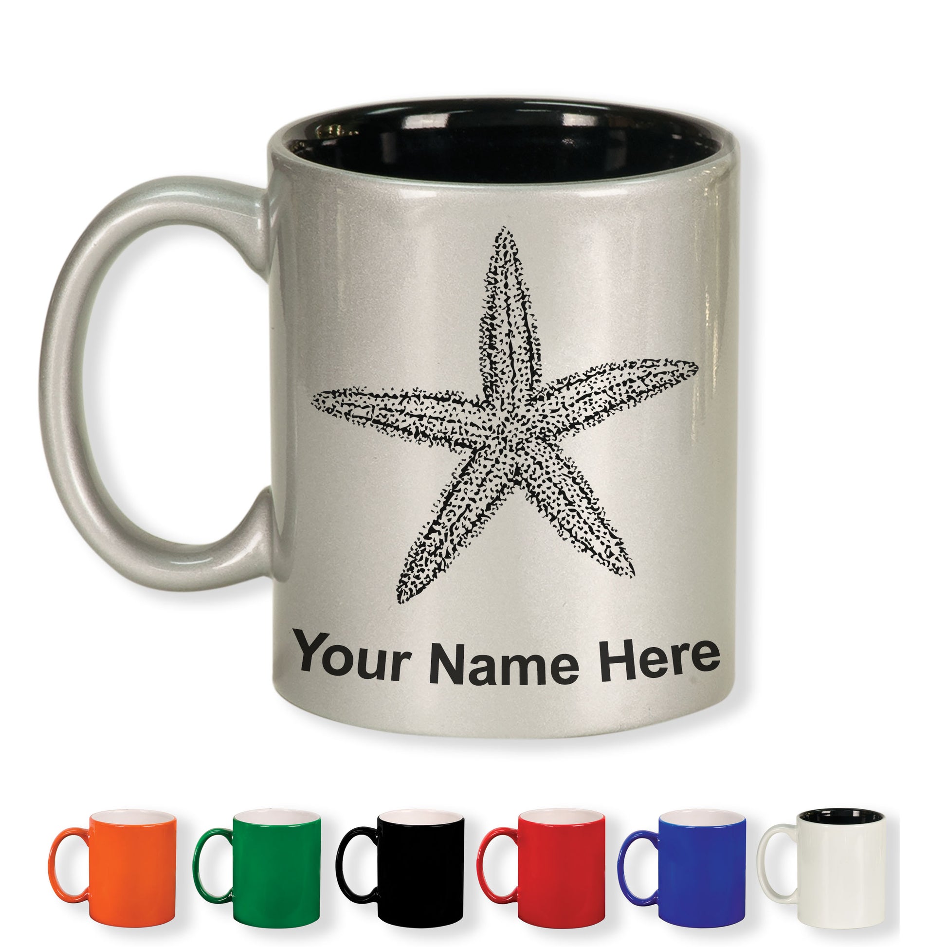 11oz Round Ceramic Coffee Mug, Starfish, Personalized Engraving Included
