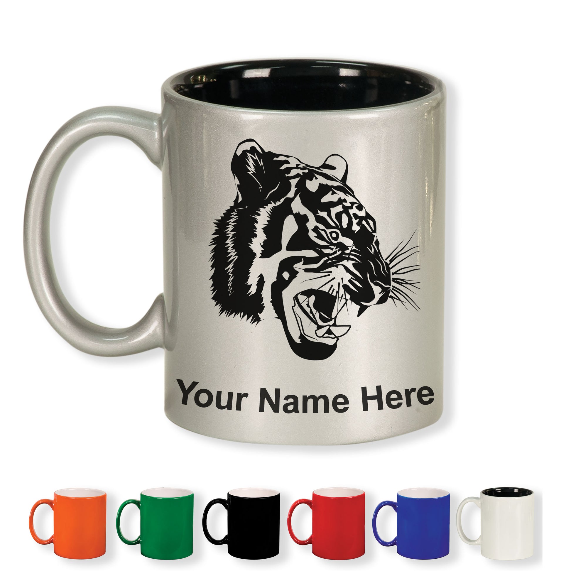 11oz Round Ceramic Coffee Mug, Tiger Head, Personalized Engraving Included