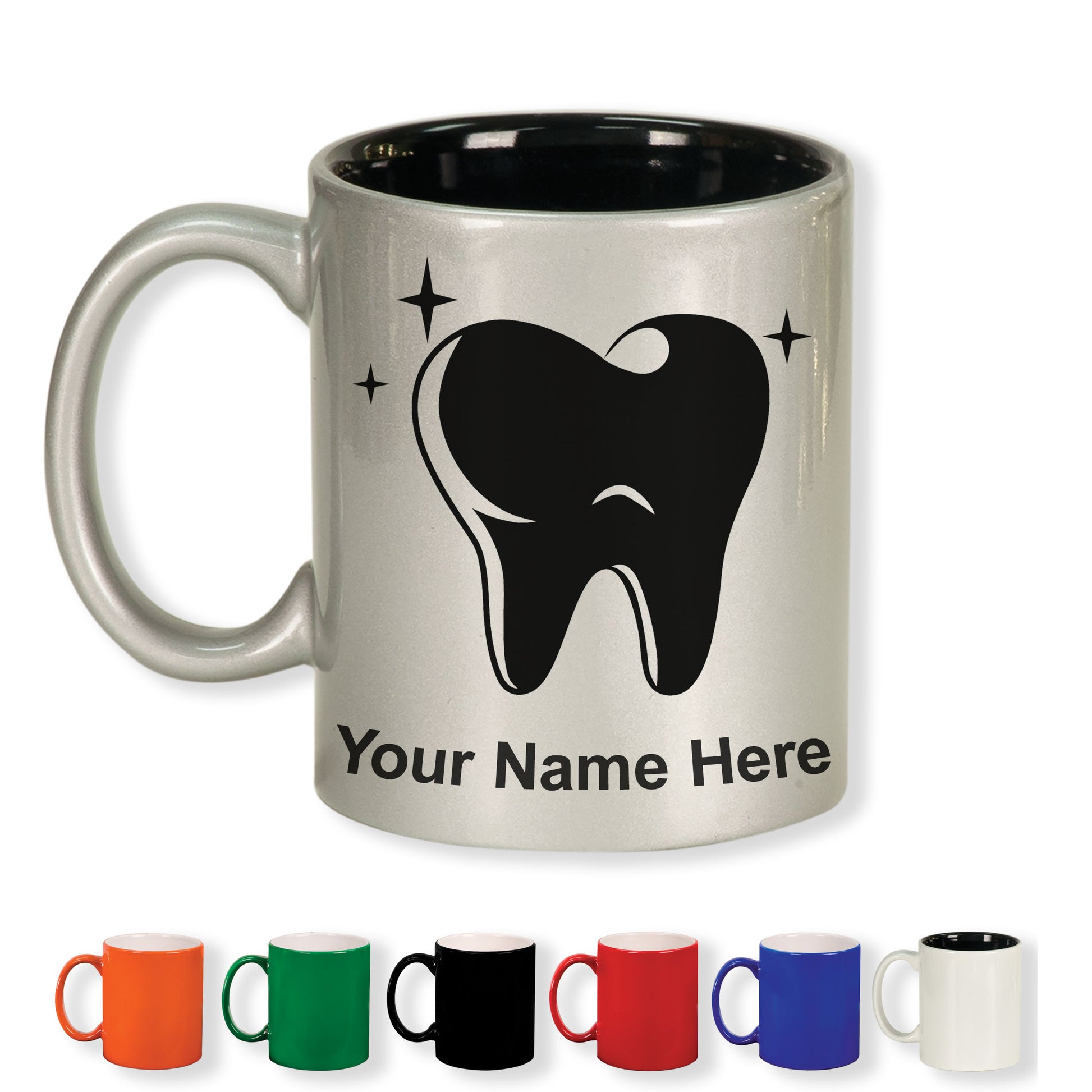 11oz Round Ceramic Coffee Mug, Tooth, Personalized Engraving Included