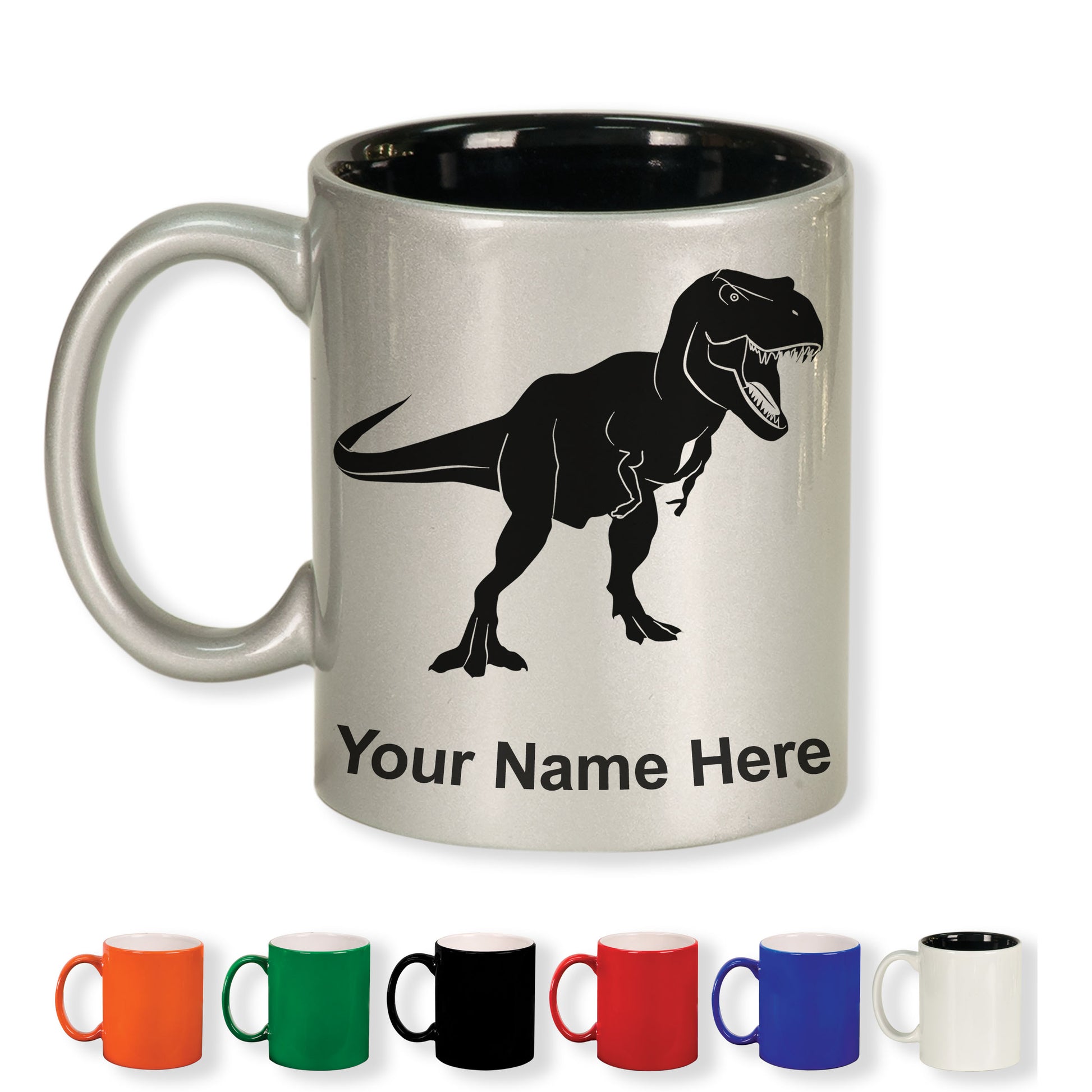 11oz Round Ceramic Coffee Mug, Tyrannosaurus Rex Dinosaur, Personalized Engraving Included