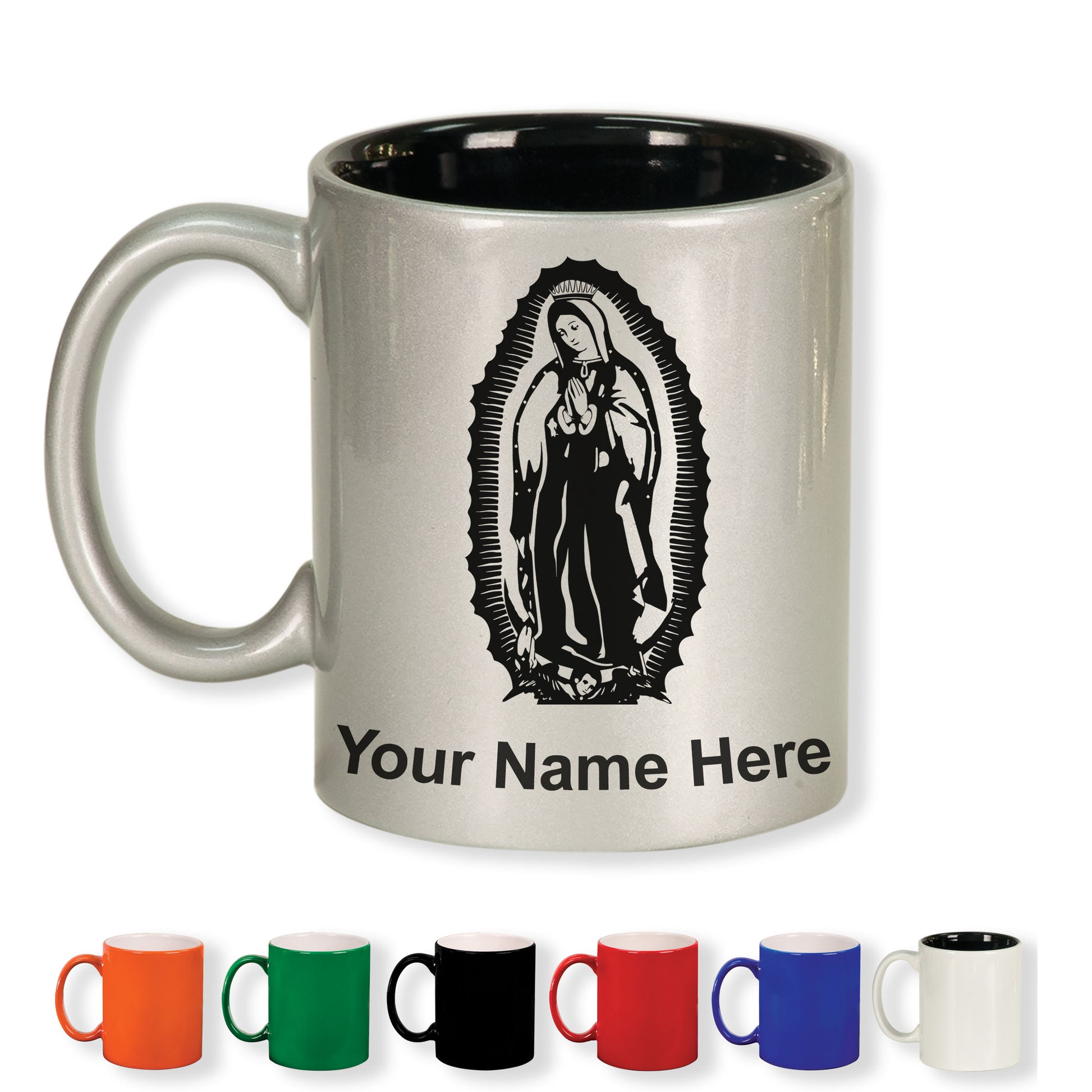 11oz Round Ceramic Coffee Mug, Virgen de Guadalupe, Personalized Engraving Included